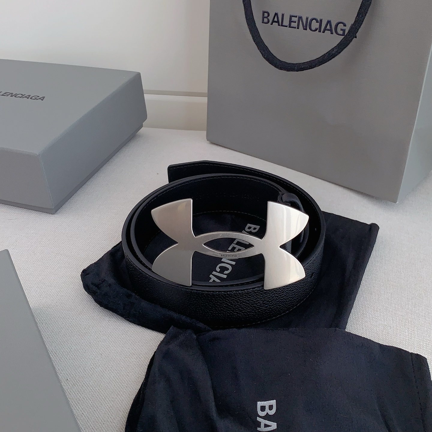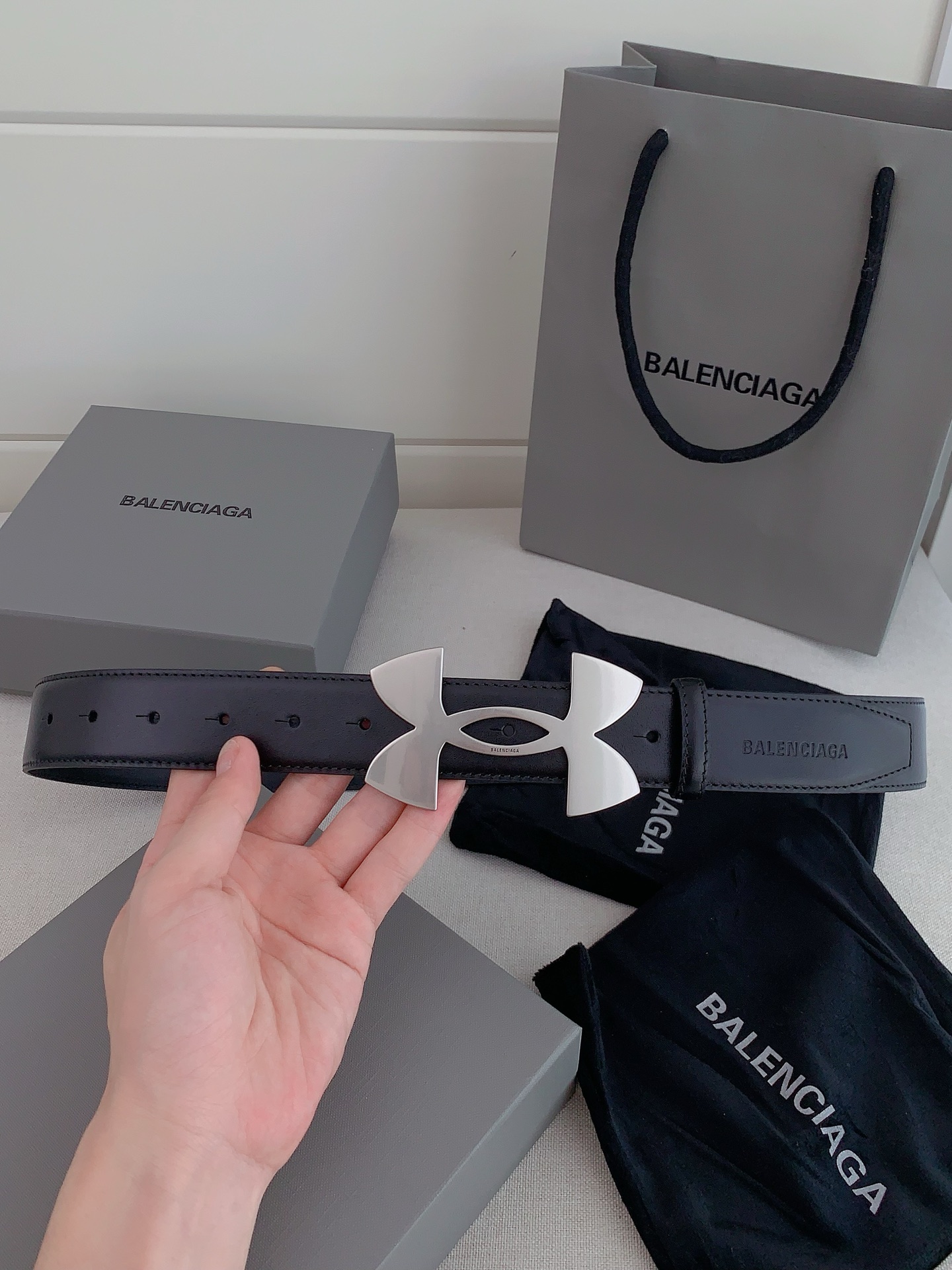 Balenciaga 3.5cm width. French luxury brand, influential in fashion. Urban style, imported calfskin, brass hardware. Versatile essential.