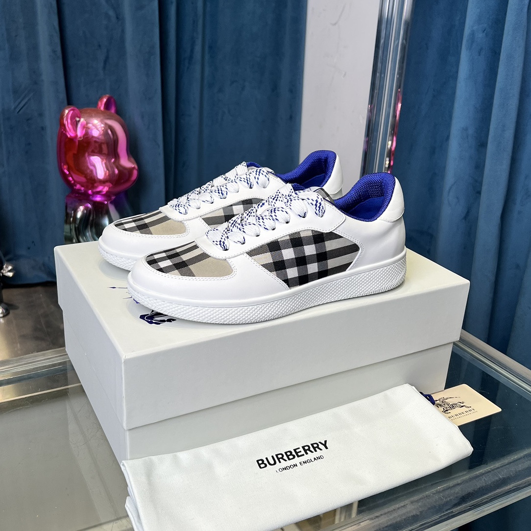 New Burberry Check Sneakers: Classic horse emblem, cotton blend, made in Italy. Unisex sizes available.