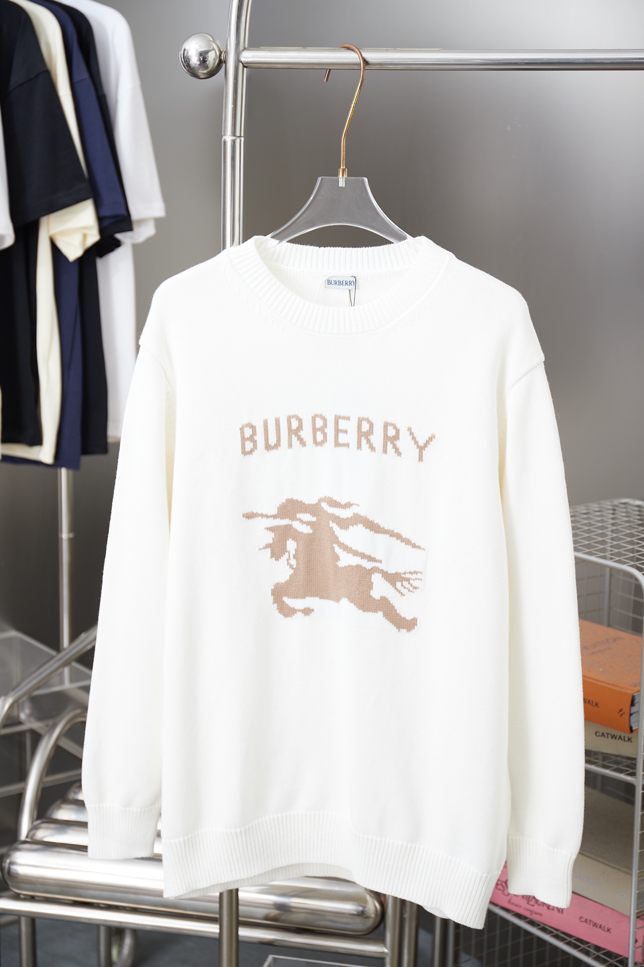 BBR 25FW autumn winter new sweater classic war horse jacquard round neck design. 50% wool, 35% cashmere, 15% synthetic fiber. Colors: white, black, gray, royal blue, khaki. Sizes: S M L XL.