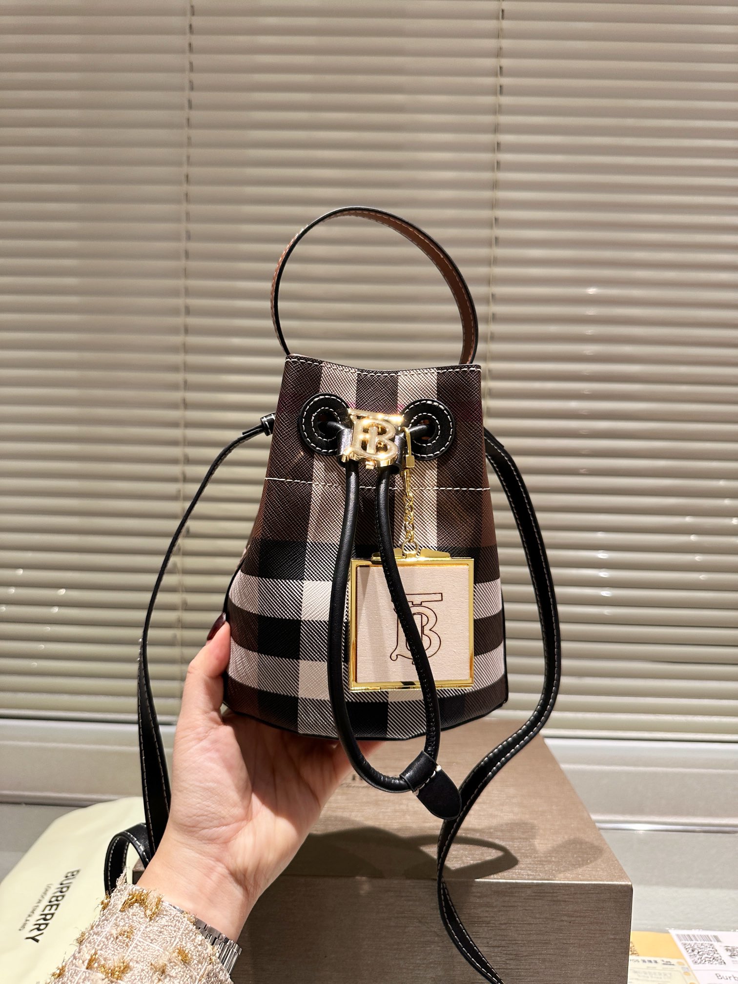 Burberry新款水桶包,容量大,实用,高品质,配牛皮和原版五金。尺寸27x27x17x19厘米。