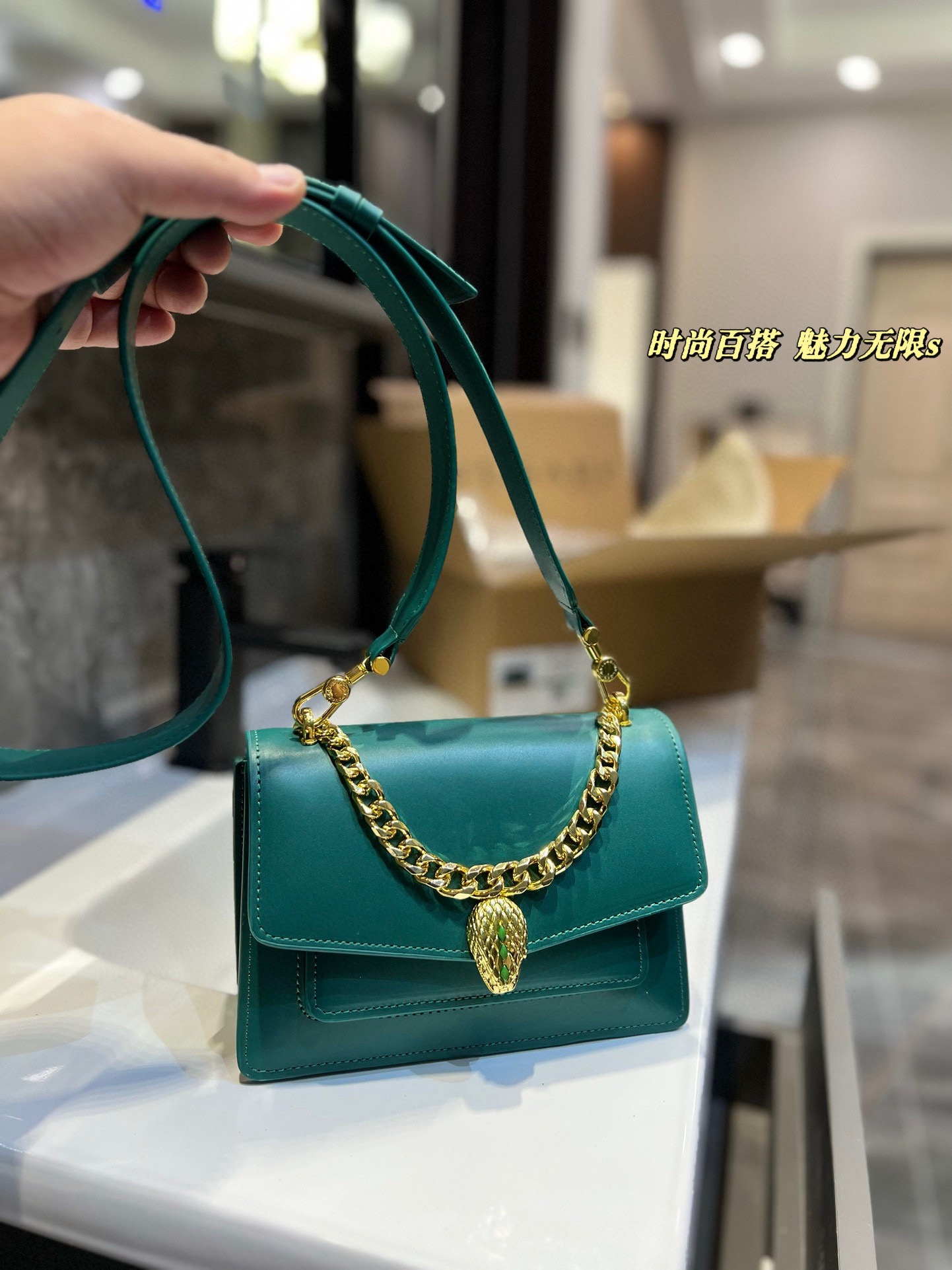 Bvlgari Serpenti bag with folding gift box, continuously innovating with new colors and styles. Exudes luxury and elegance, visually stunning. Dimensions: 20*14.