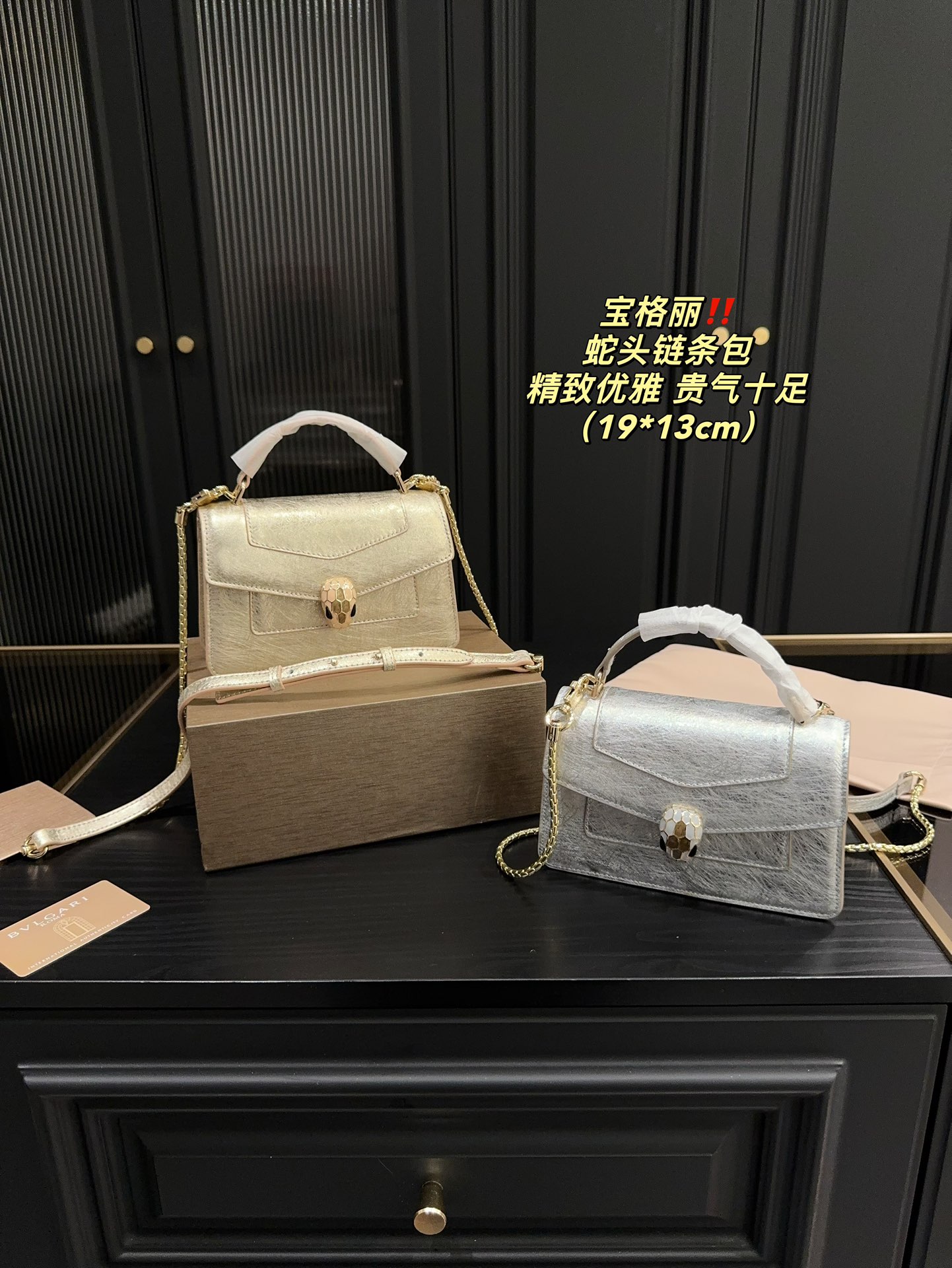 Bvlgari classic foldable box, 19.13cm, calfskin, imported snakehead clasp, snake bone chain.