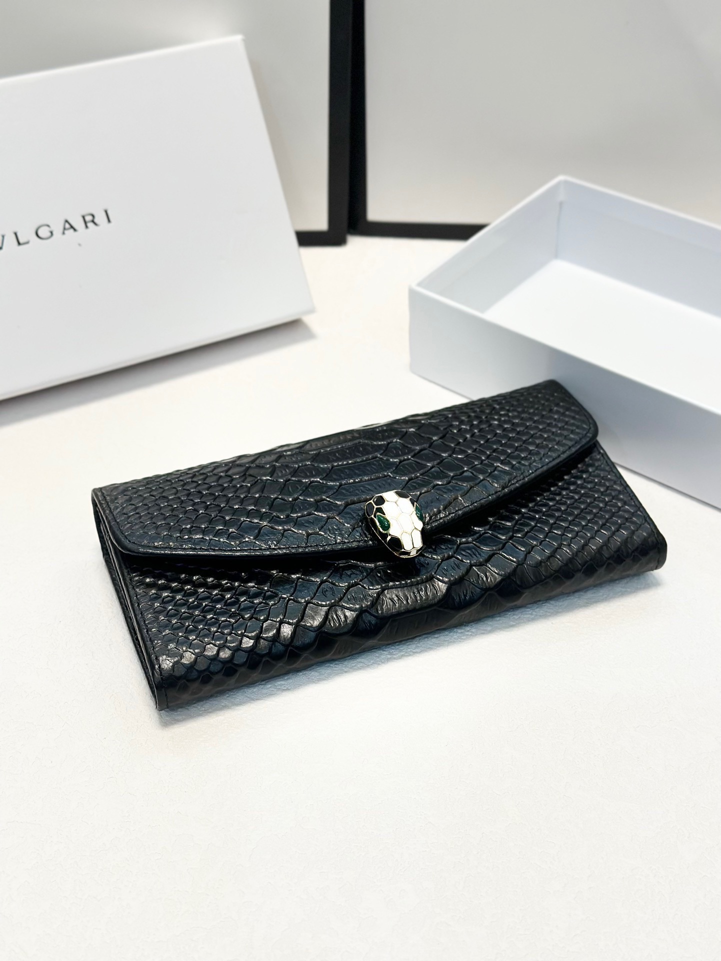 Black color, size 19x10, Bvlgari leather wallet, excellent quality, must-have for women.