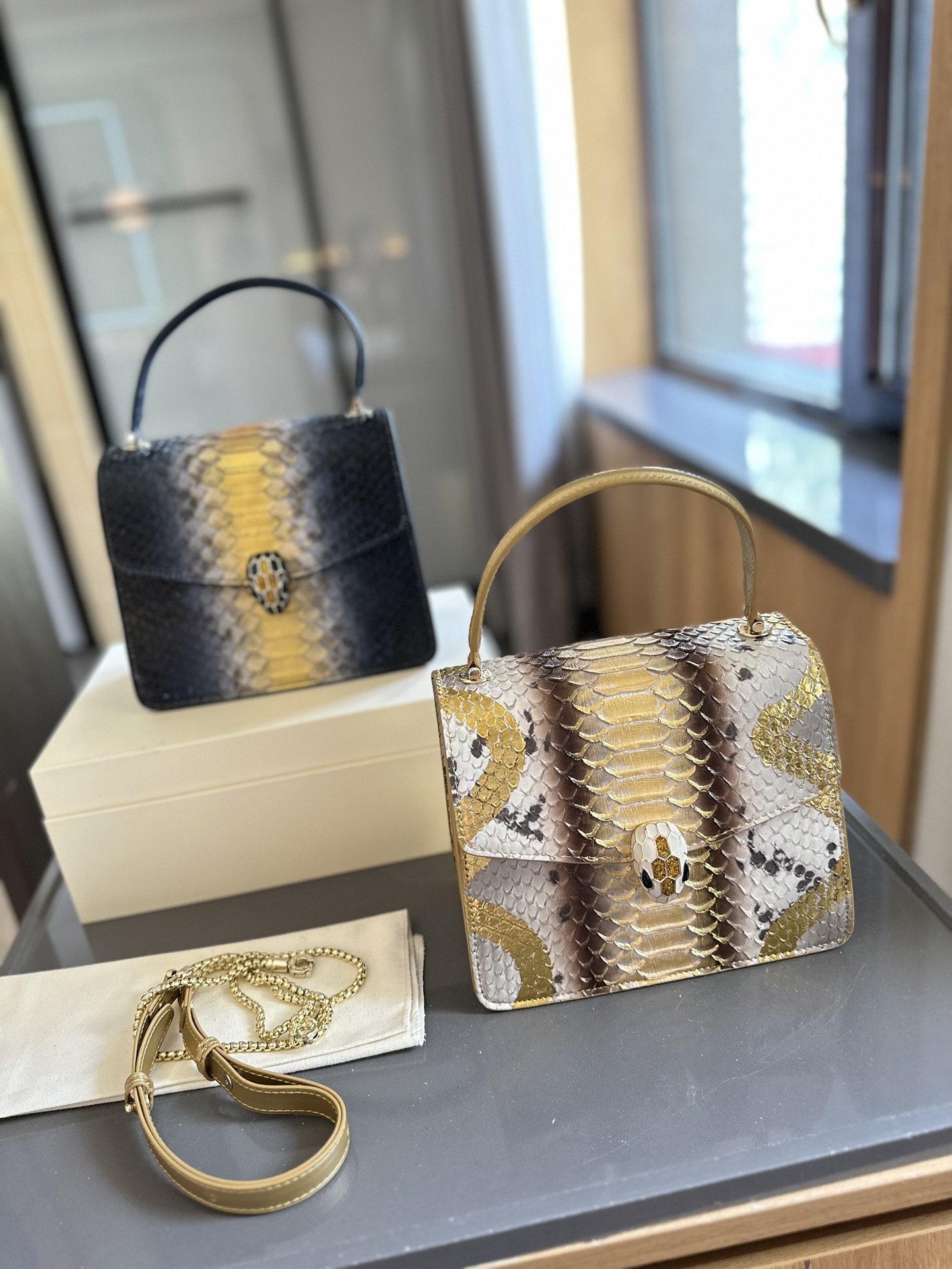 Bvlgari Serpenti bag innovates with new colors and styles, exuding luxury and elegance. Size: 21.5x13cm.