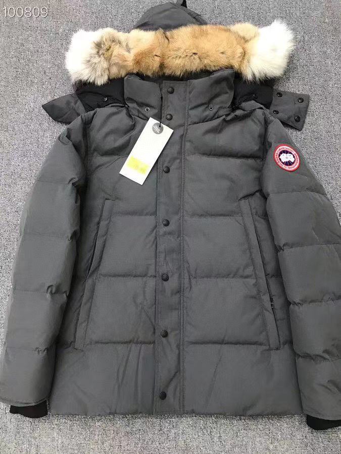 High-quality Canada Goose Wyndham parka replica. Features authentic fabric, down filling, YKK zippers, coyote fur trim, and precise stitching. Sizes XS-XXL.