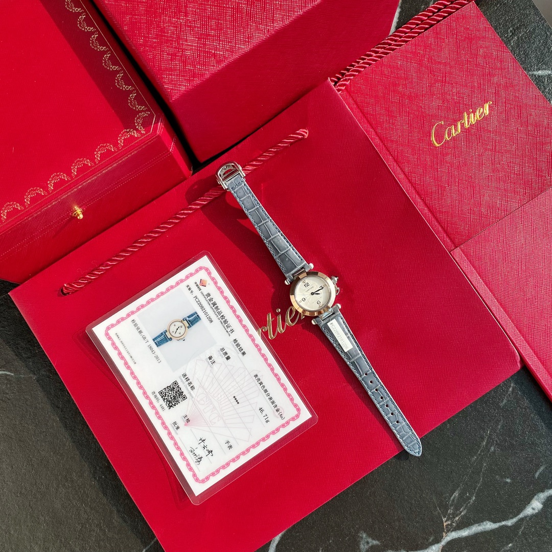 Cartier Pasha 2022 new release, 30mm diameter, 8.22mm thickness, Swiss quartz movement, alligator strap, four colors available.