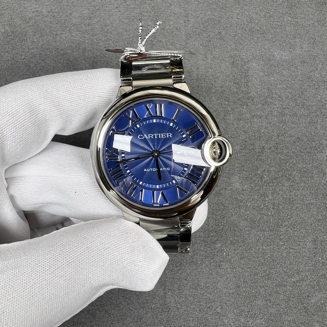 Cartier Blue Balloon replica watch, automatic mechanical, 42.1mm, stainless steel, sapphire crystal.