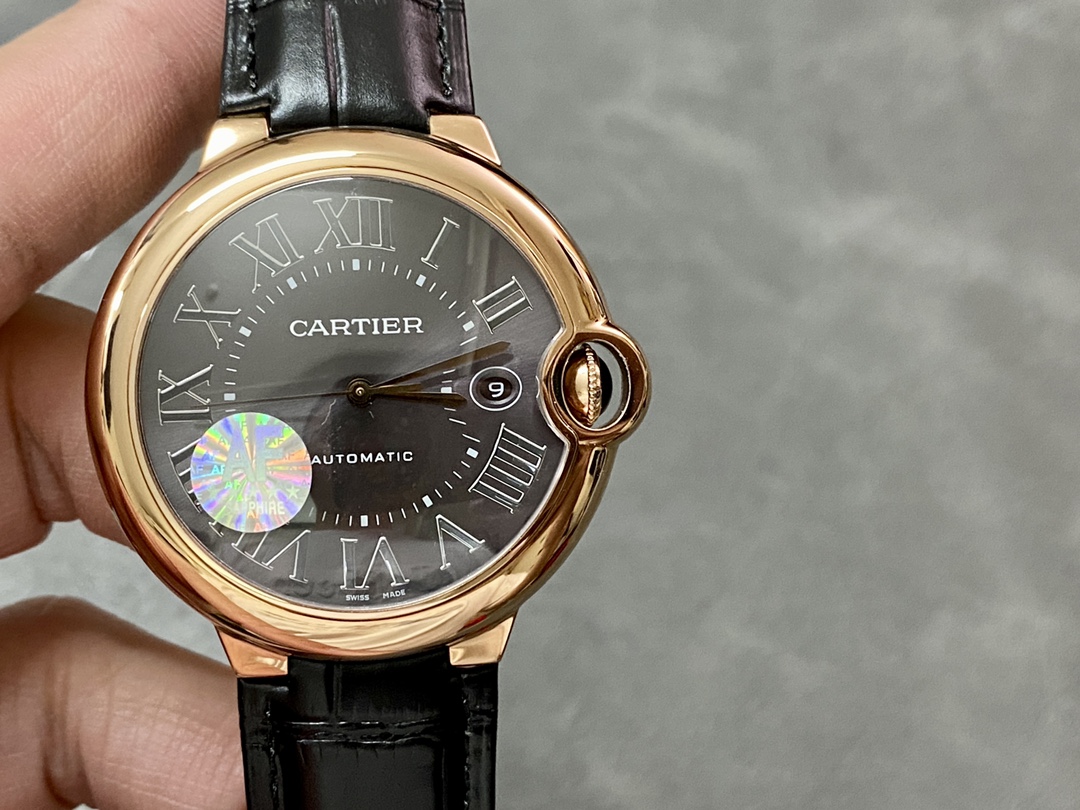 New batch of Cartier Ballon Bleu 42mm men's mechanical watches with Swiss ETA-2892 movement, 18K gold. High-quality replica, waterproof, with premium packaging.