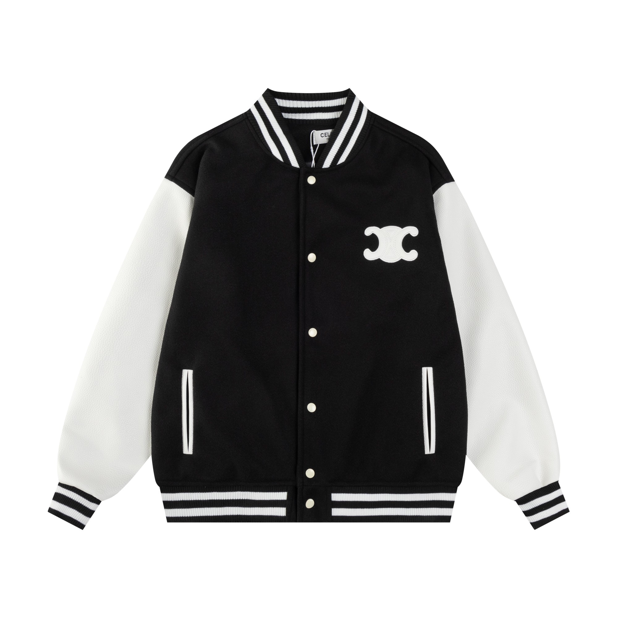Celine baseball jacket, show style. Custom high-quality version with imported materials. Excellent craftsmanship, unisex luxury essential.