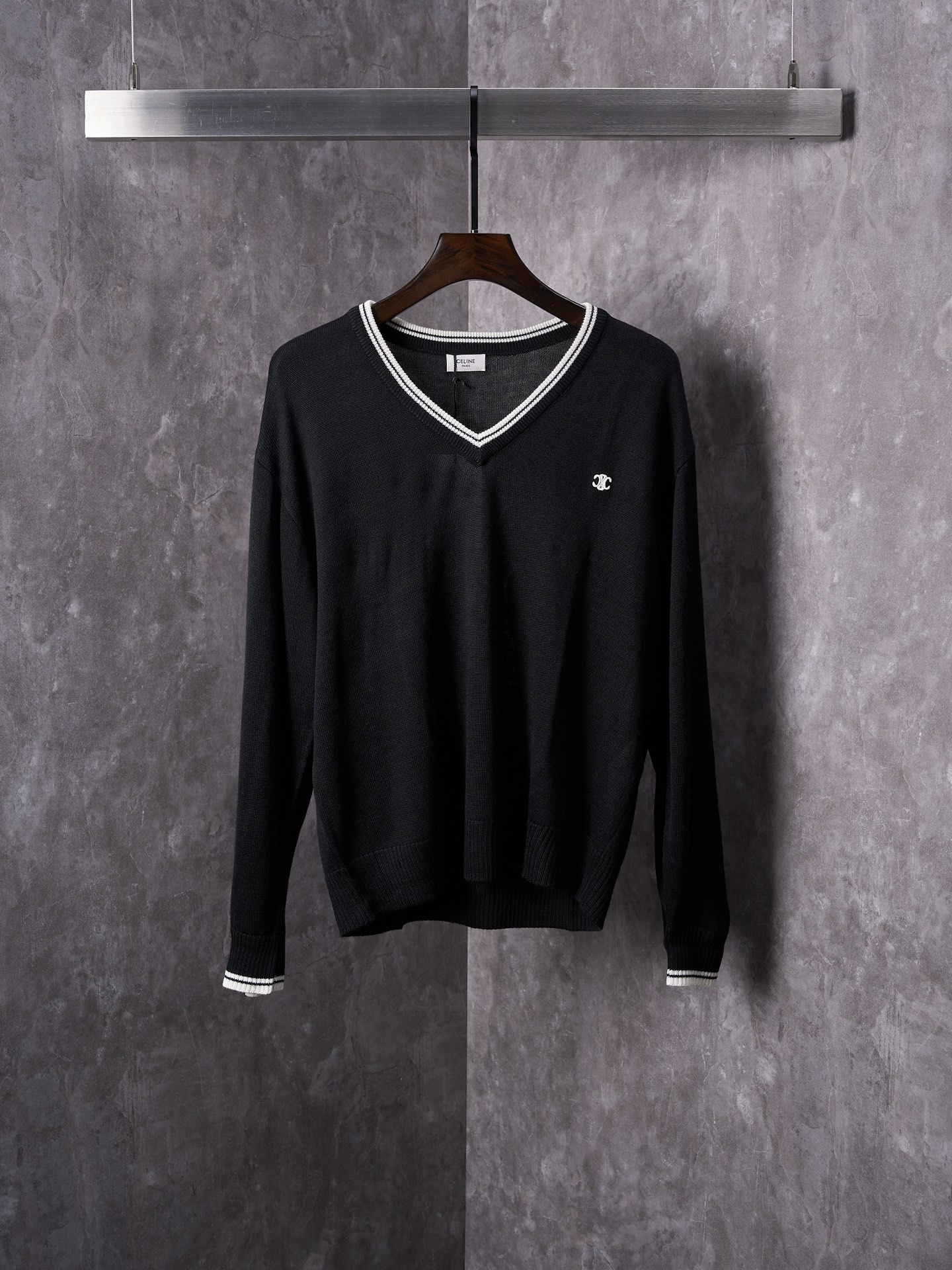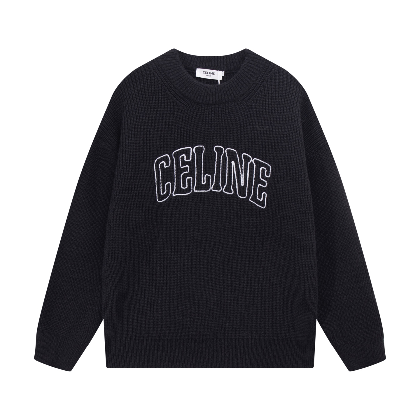 Celine embroidered letter wool sweater. Colors: black, gray, white. Sizes: S M L XL XXL.