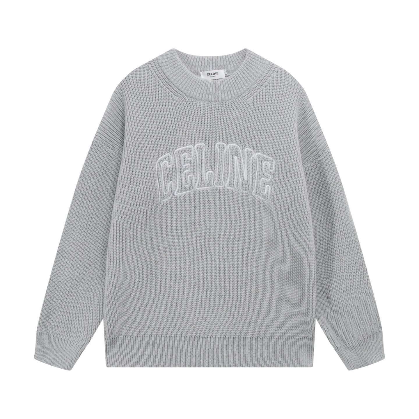 Celine embroidered letter wool sweater. Colors: black, gray, white. Sizes: S M L XL XXL.