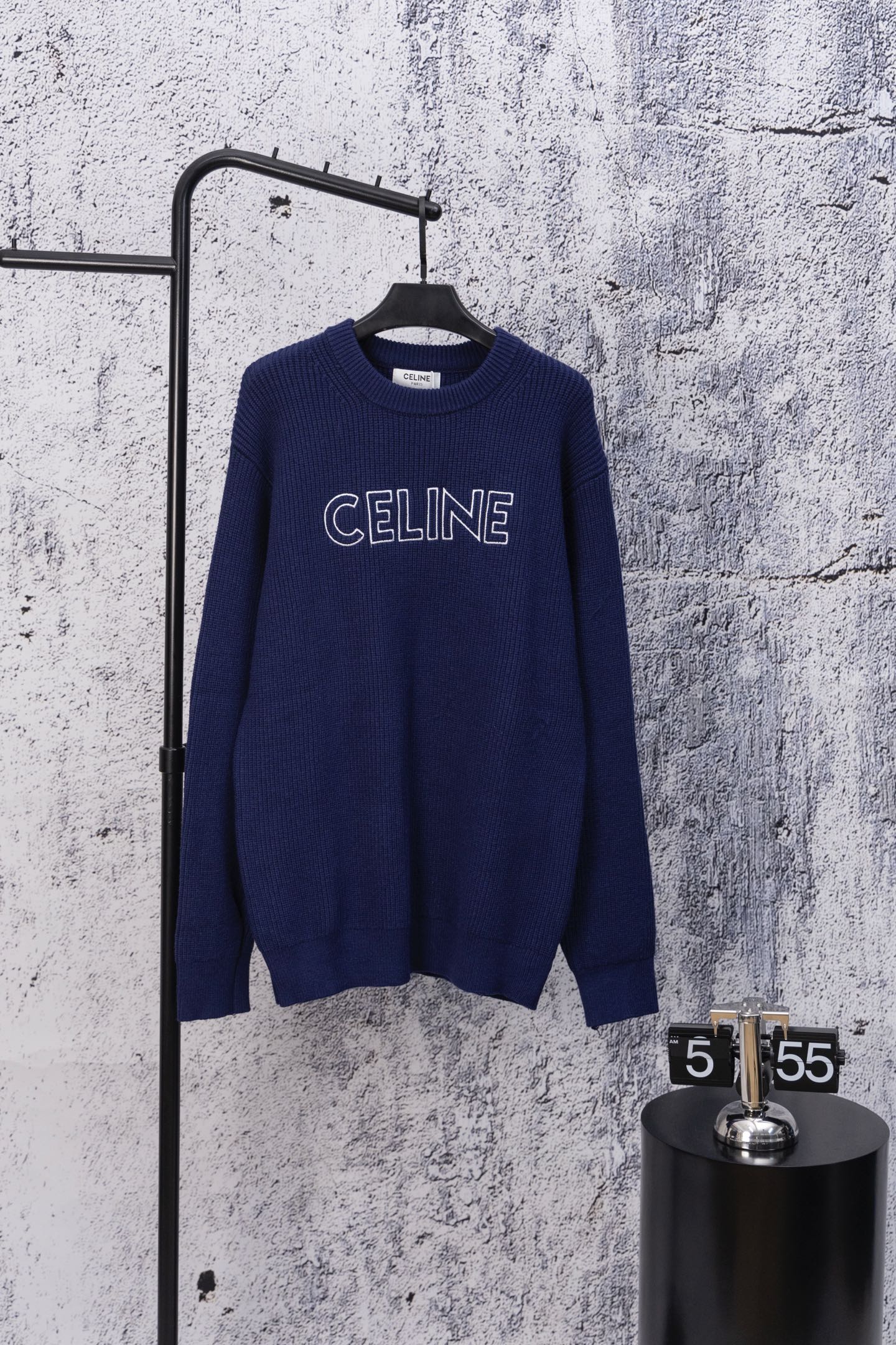 Celine 25SS autumn-winter embroidered logo knit sweater. Loose fit, soft wool blend. Colors: Navy. Sizes: S-XL.