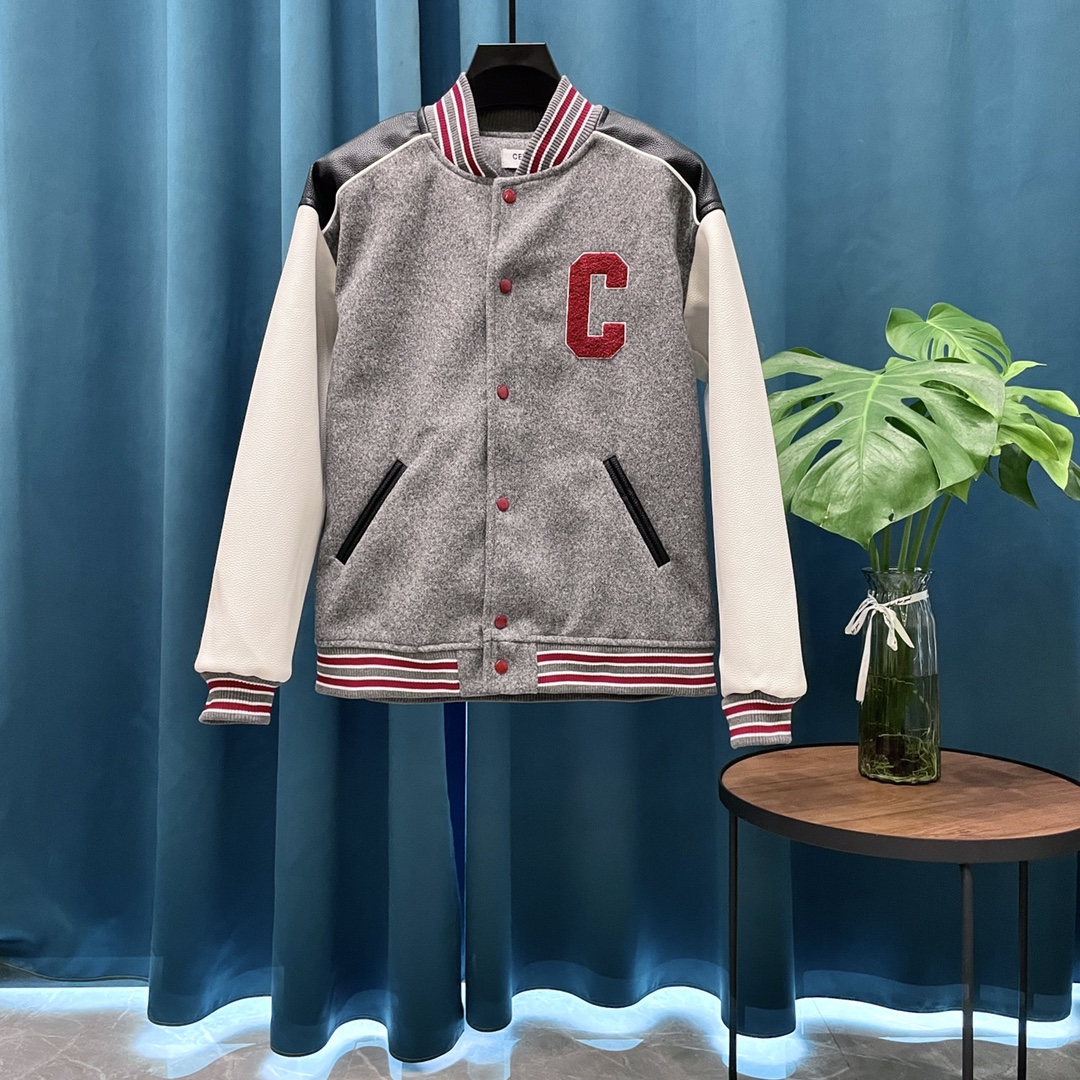 Celine baseball jacket, custom runway style. High-quality materials: imported wool and lambskin. Intricate embroidery and craftsmanship. Available in M L XL XXL.