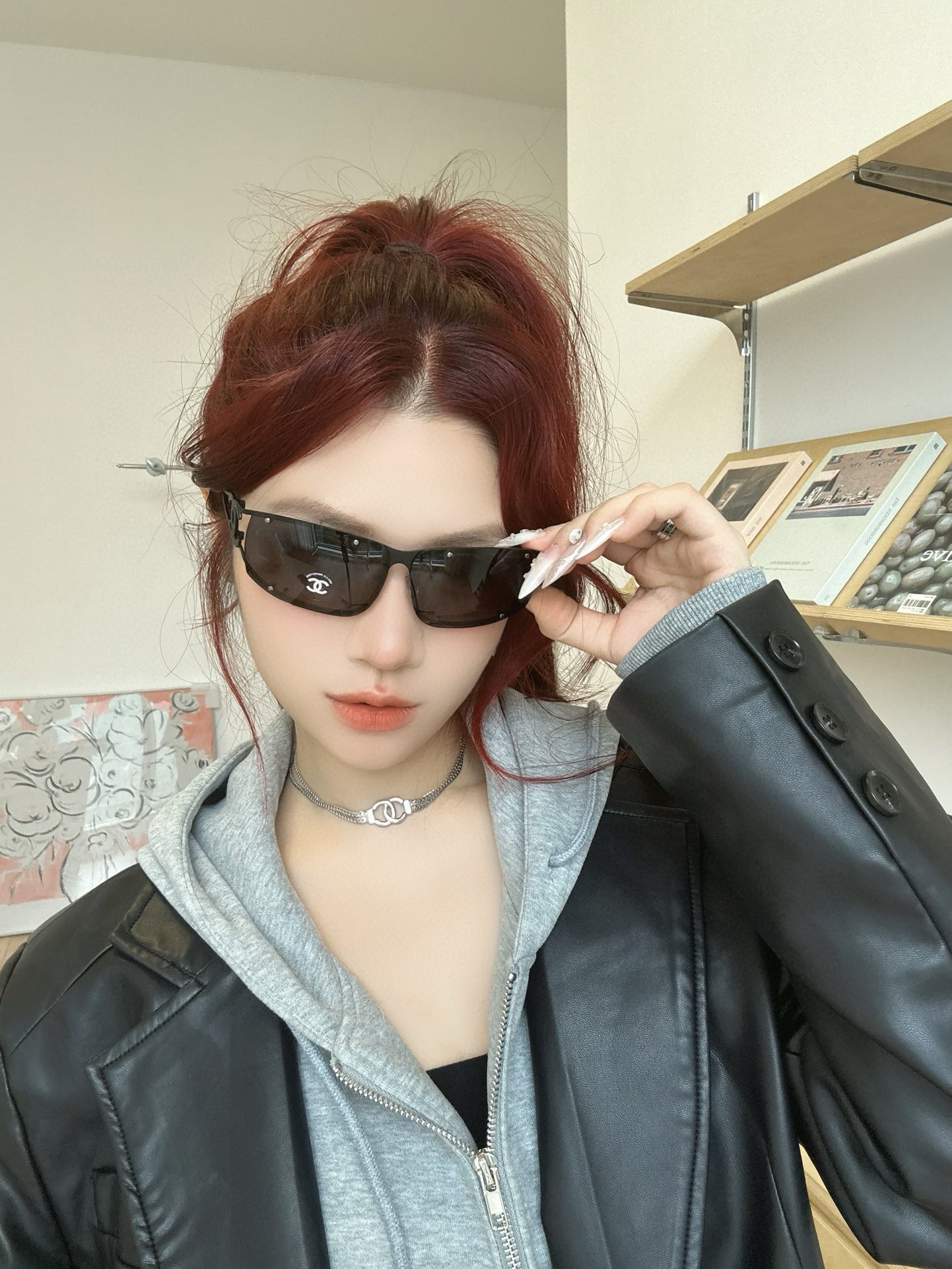 Face photo of CHANE* model 9520, size 64-11-120. Y2K trendy sunglasses with large frames, slimming, also suitable as a hairband.