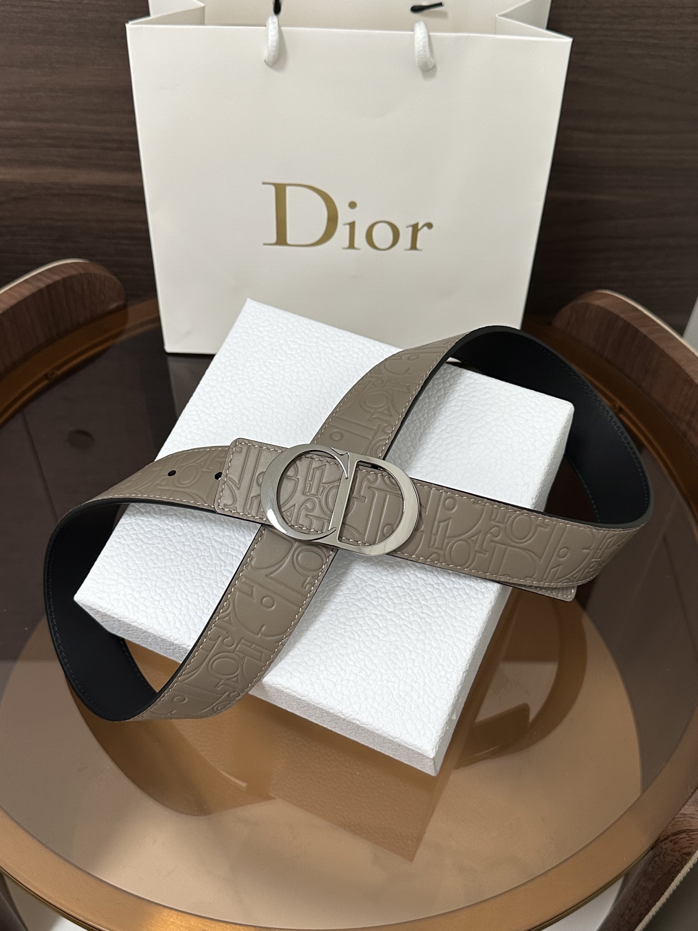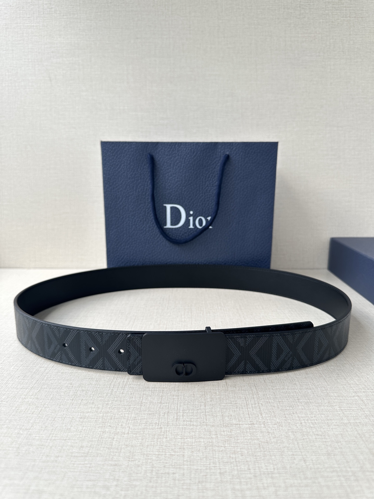 DI0R reversible belt, 35mm, crafted from calfskin. Elegant and modern, compatible with various buckles for versatile styling.