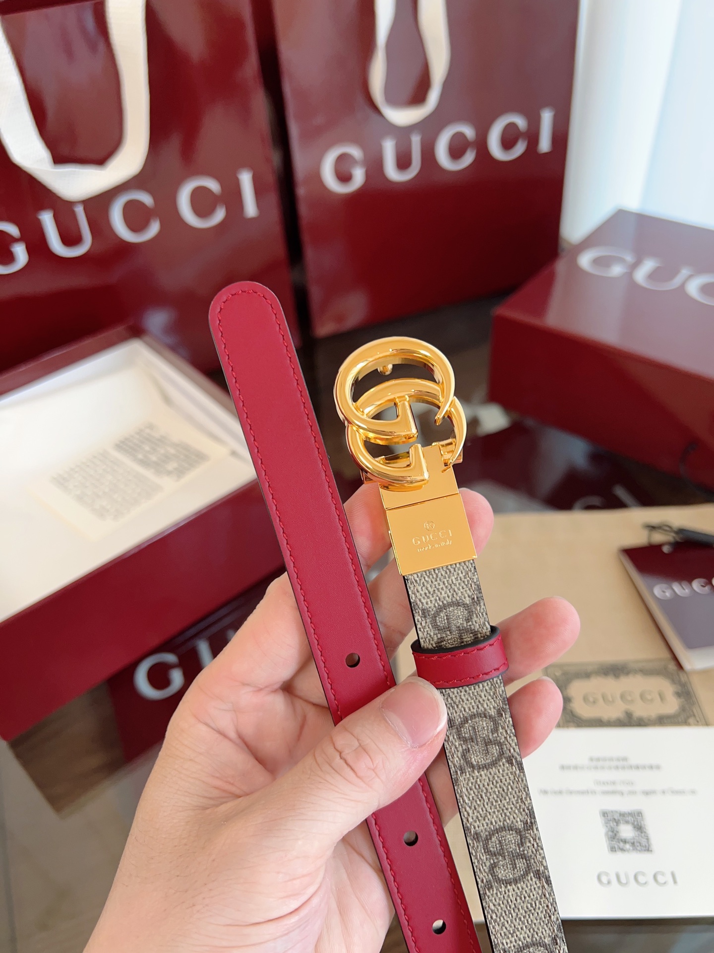 Gucci women's classic stainless steel buckle, imported plain weave, signature leather, 2cm width.