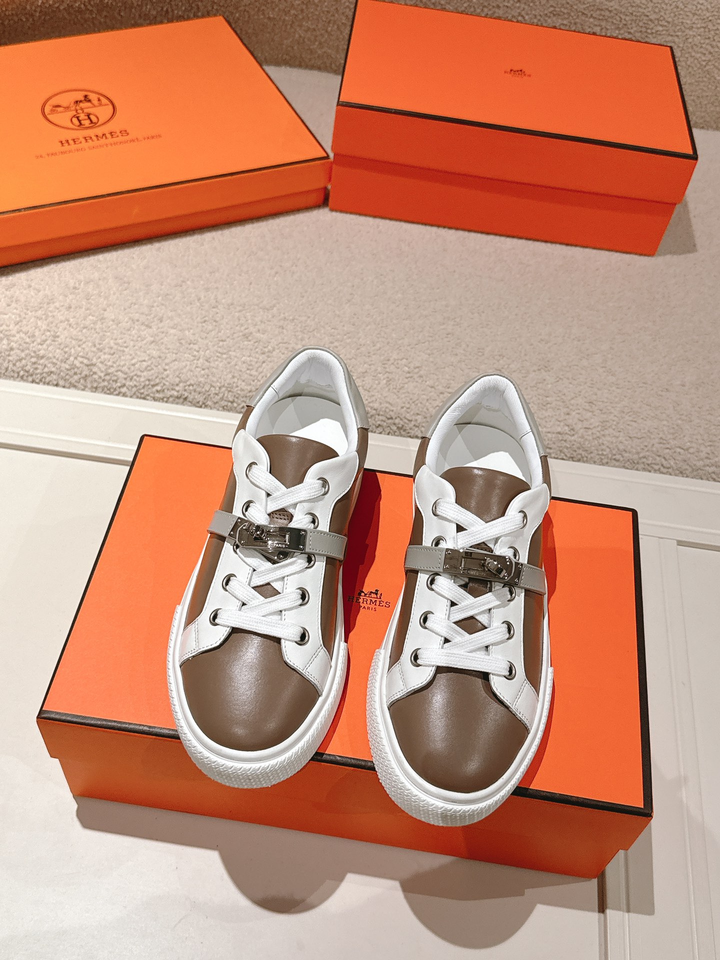 Hermes Kelly buckle sneakers. Classic couple design. High-end version. Specific leather/canvas, sheepskin lining, original TPU sole. Sizes 35-45. Versatile and elegant.