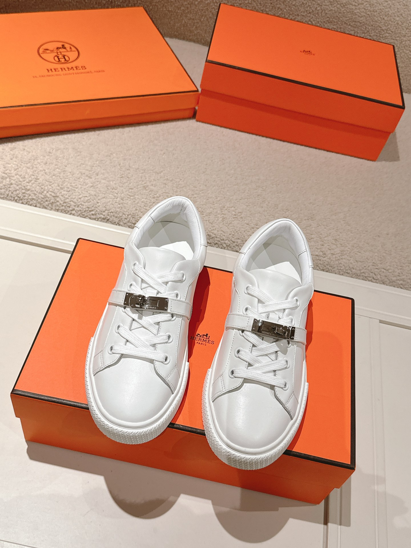 Hermes Kelly Buckle Casual White Sneakers Skate Shoes C …