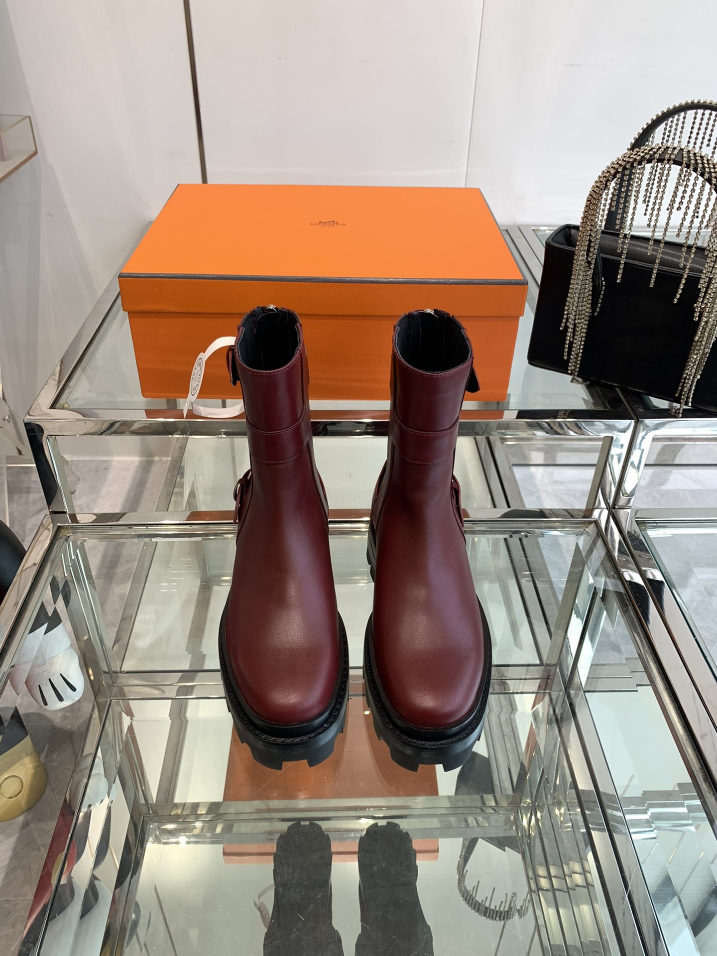 Hermes new ankle boots with 4.5cm heel, full leather, retro style. Sizes 35-39.