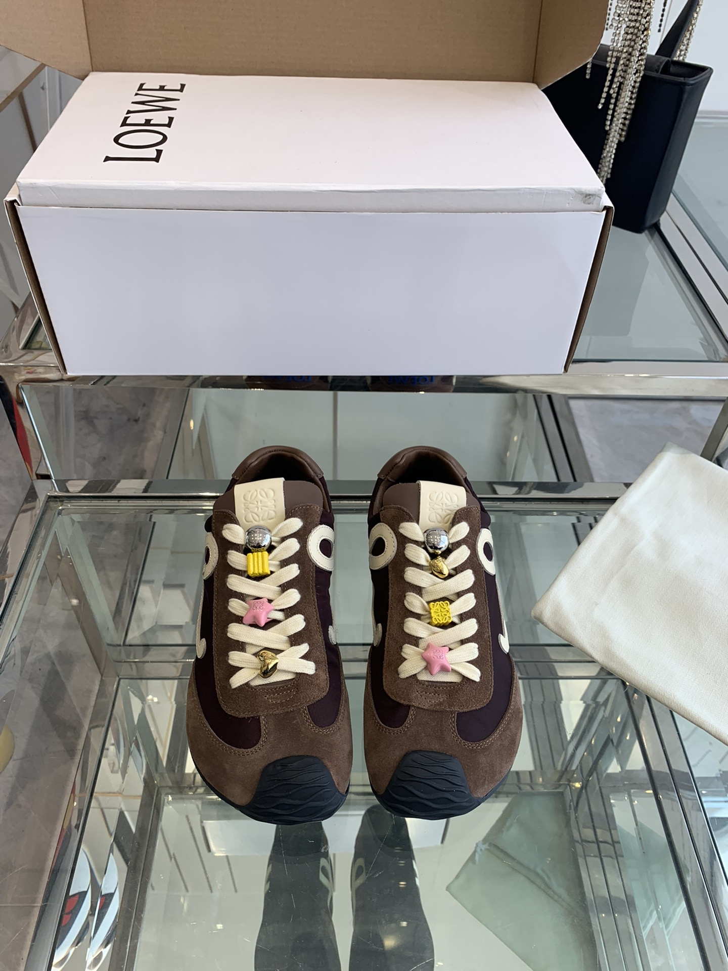Loewe 25ss Paris Fashion Week balletrunner unisex sneakers. Minimalist patchwork design, versatile and stylish. Lightweight, comfortable for walking. Upper: cowhide with original fabric, lining: lambskin, sole: durable rubber. Sizes 35-45.