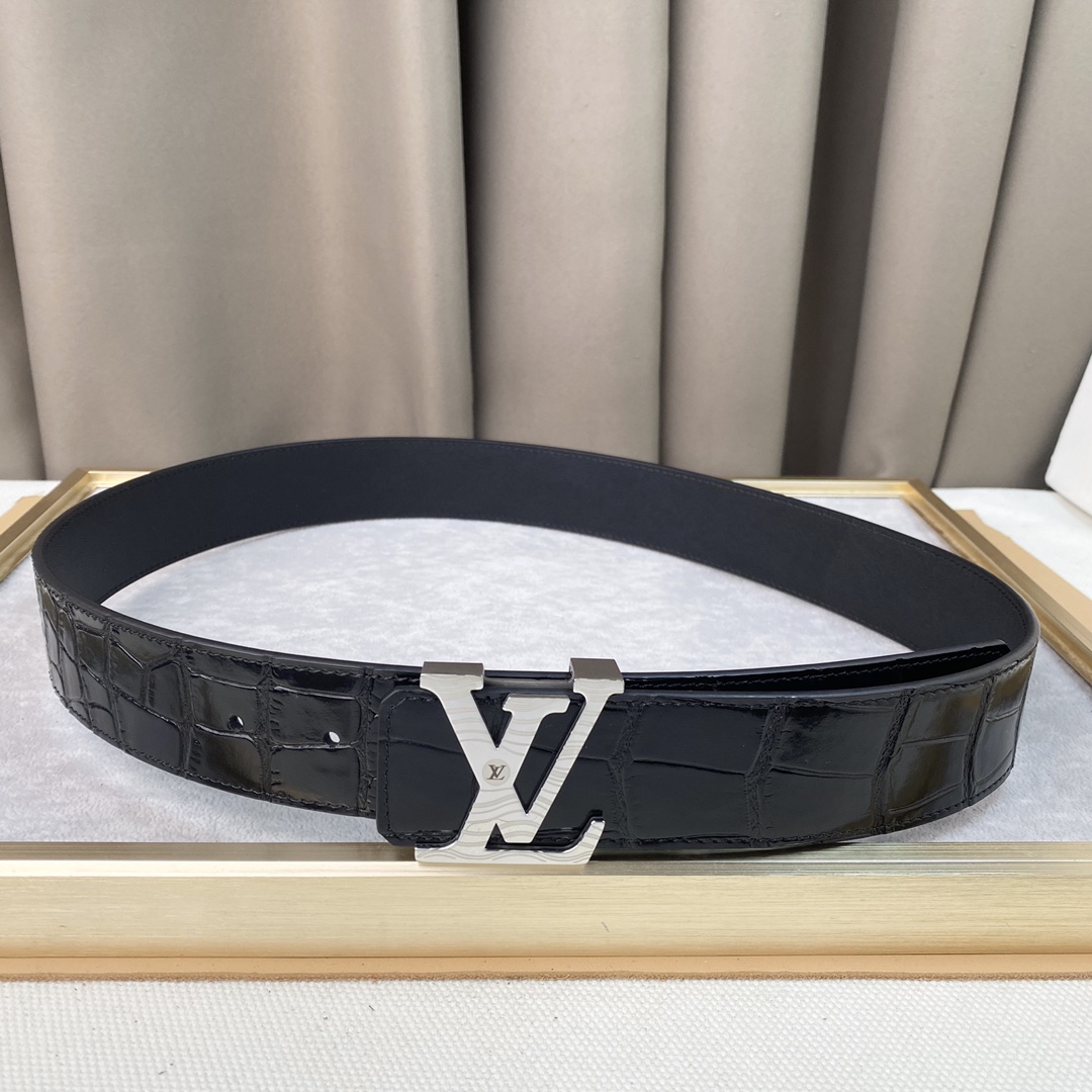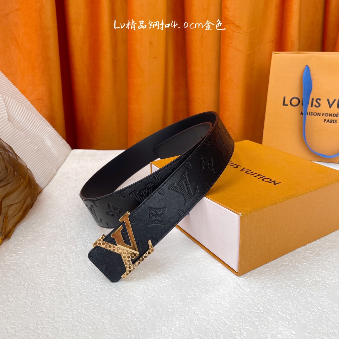 Louis Vuitton authentic mold belt, double-sided Italian imported calfskin, 40mm width, polished hardware. Ideal gift.