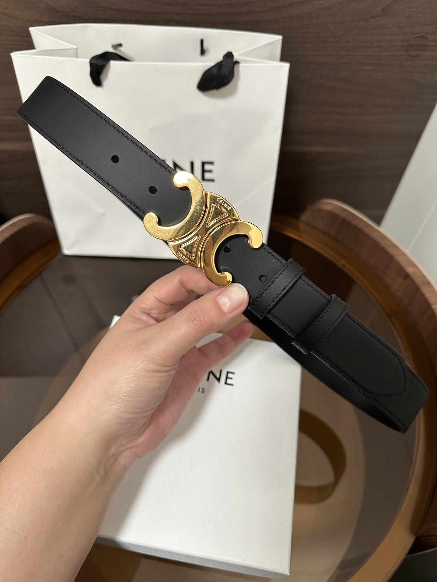 CÉLINE Triomphe large vintage leather belt with metal buckle, 3.0cm width.