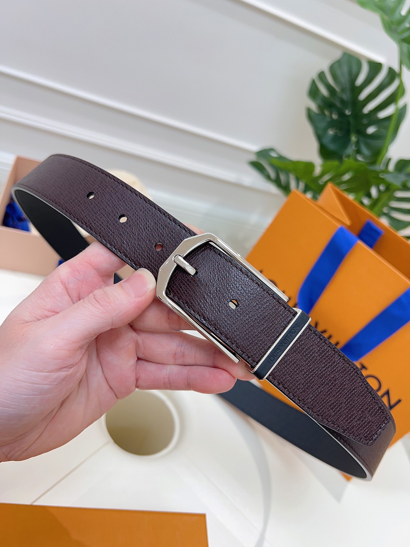 Louis Vuitton authentic mold double-sided Italian imported leather belt 40mm width. Fashionable gift.