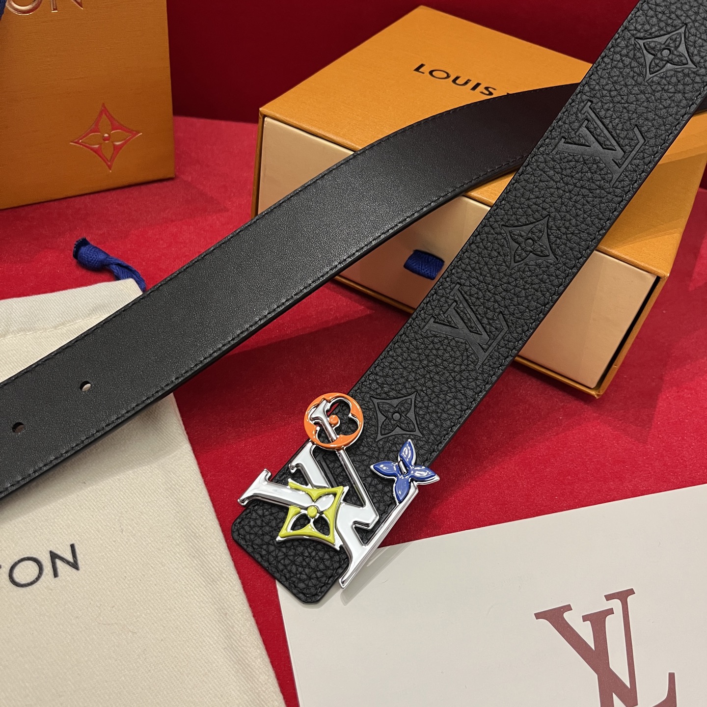 Trendy Men's Belt: LV NEW 4cm width, imported Togo calfskin with pattern, black, exquisite buckle, multiple colors, original packaging.