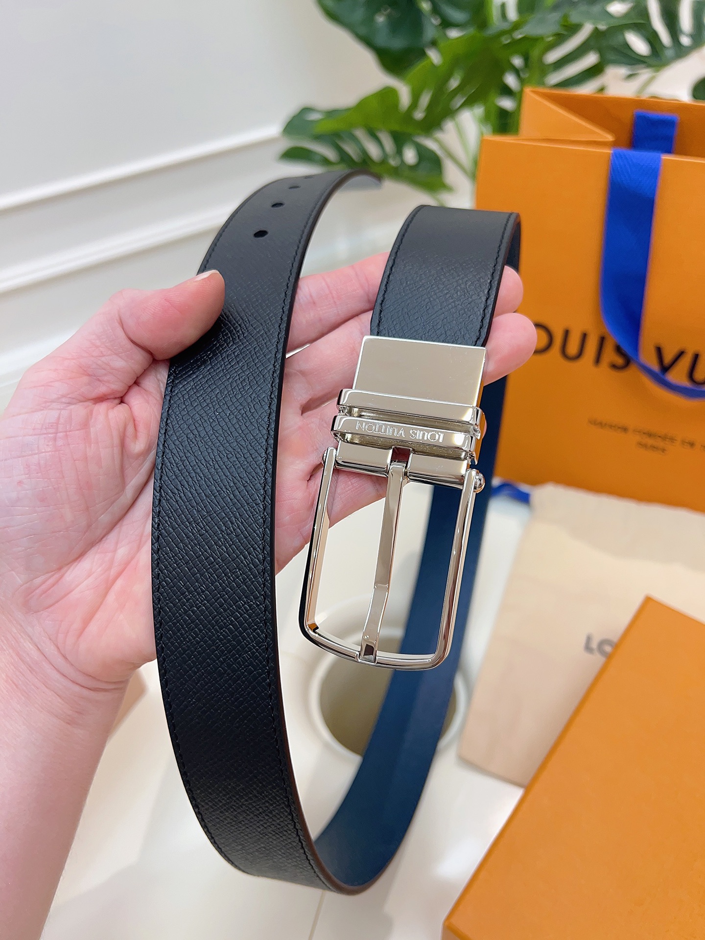 3.4 cm wide LV Trunk reversible belt. The leather craft …