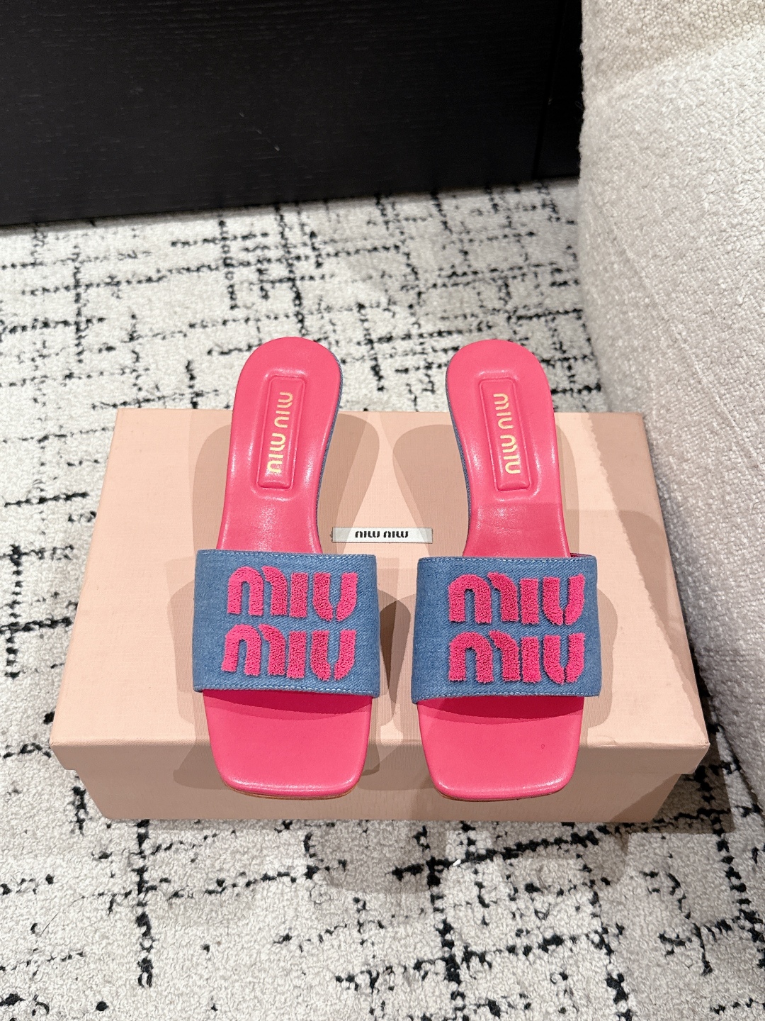 Miu Miu 25ss Latest Summer Flat Denim Lambskin Sandals …