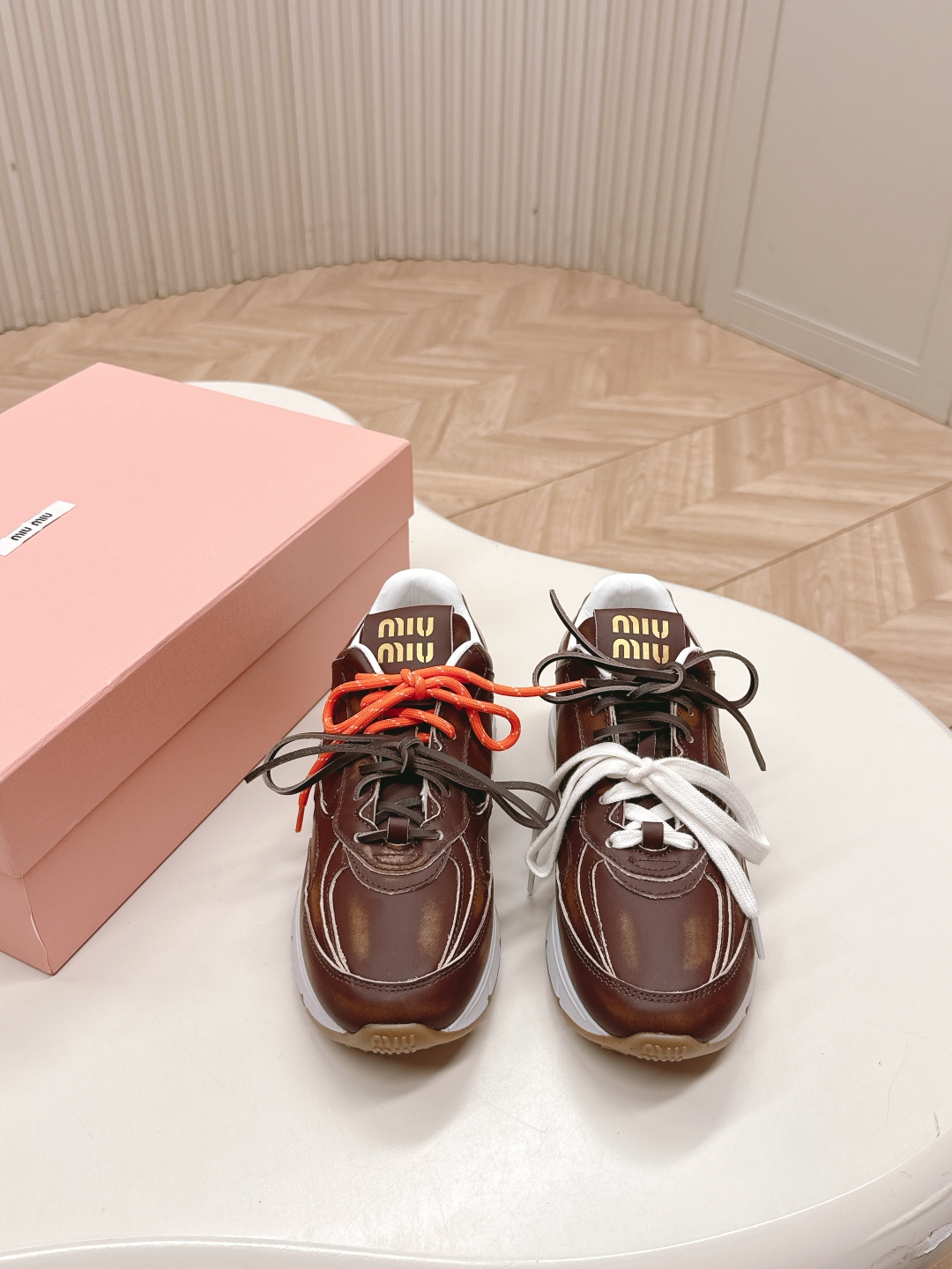 Miu Miu retro dad shoes, worn-in fashion, simple and elegant. Comfortable, versatile. Double laces, imported cowhide and mesh, mixed sheepskin lining. Sizes 35-40.