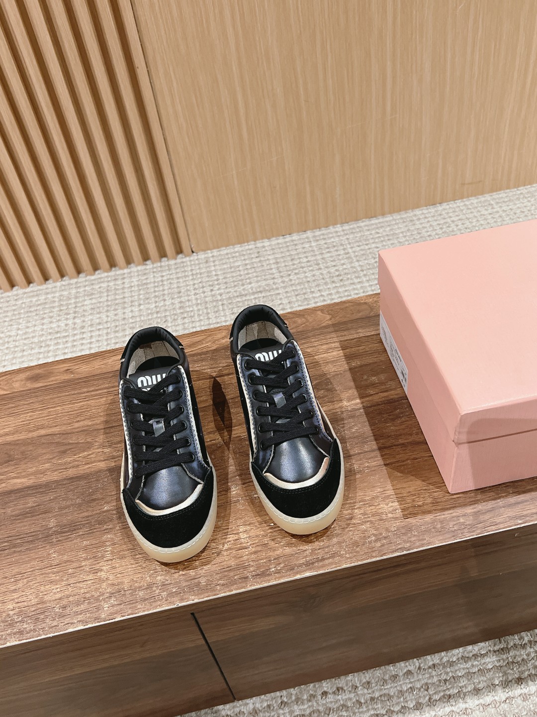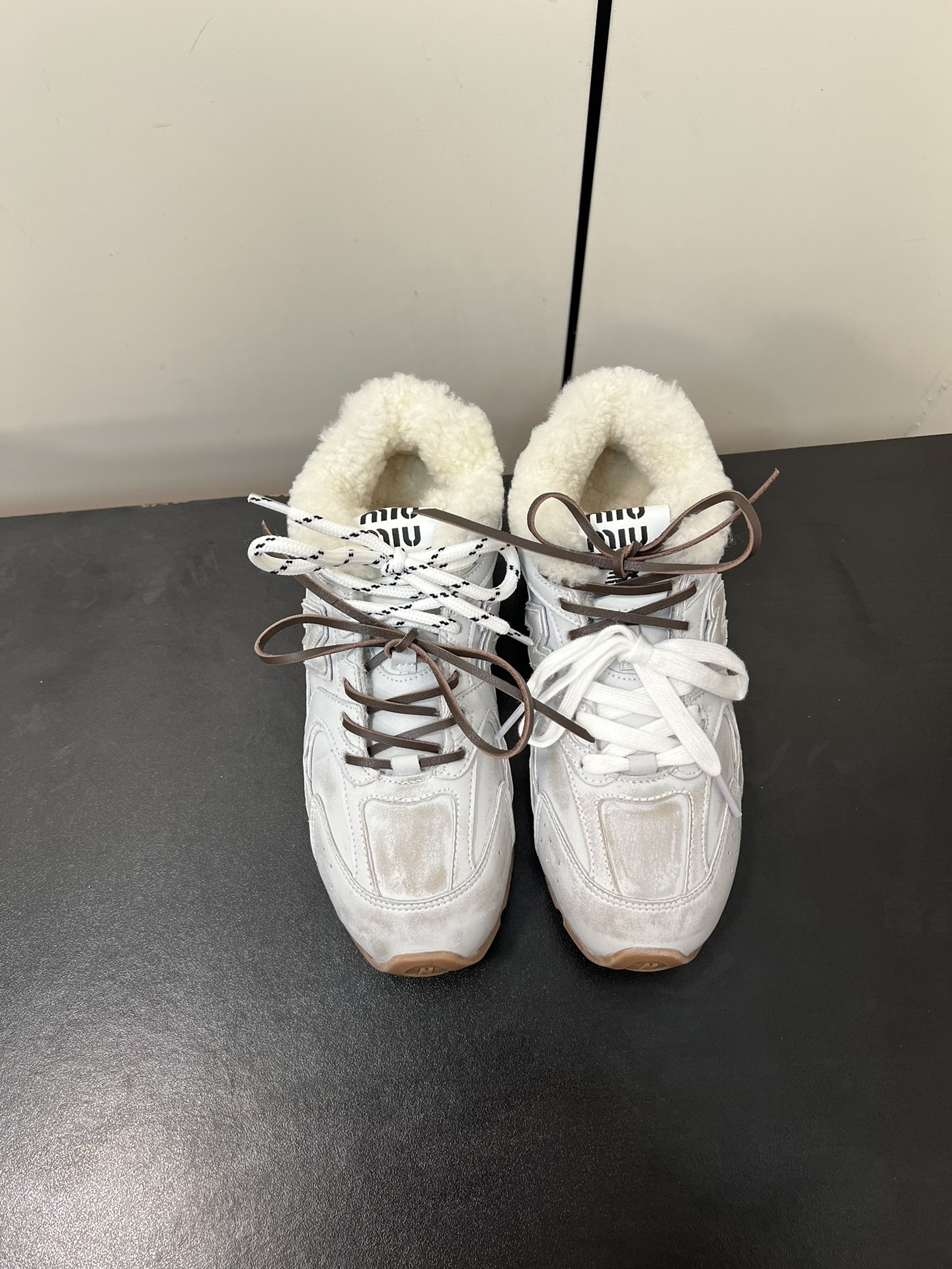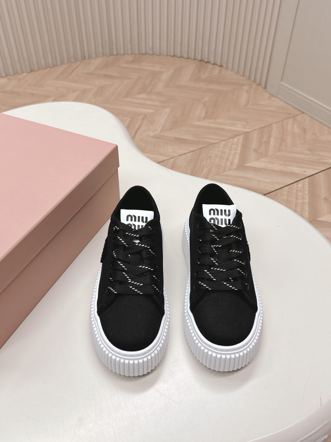 Miu Miu 2025 SS new sneakers. Bold design, thick sole, custom fabric, lambswool lining, non-slip rubber sole. Size 35-40.