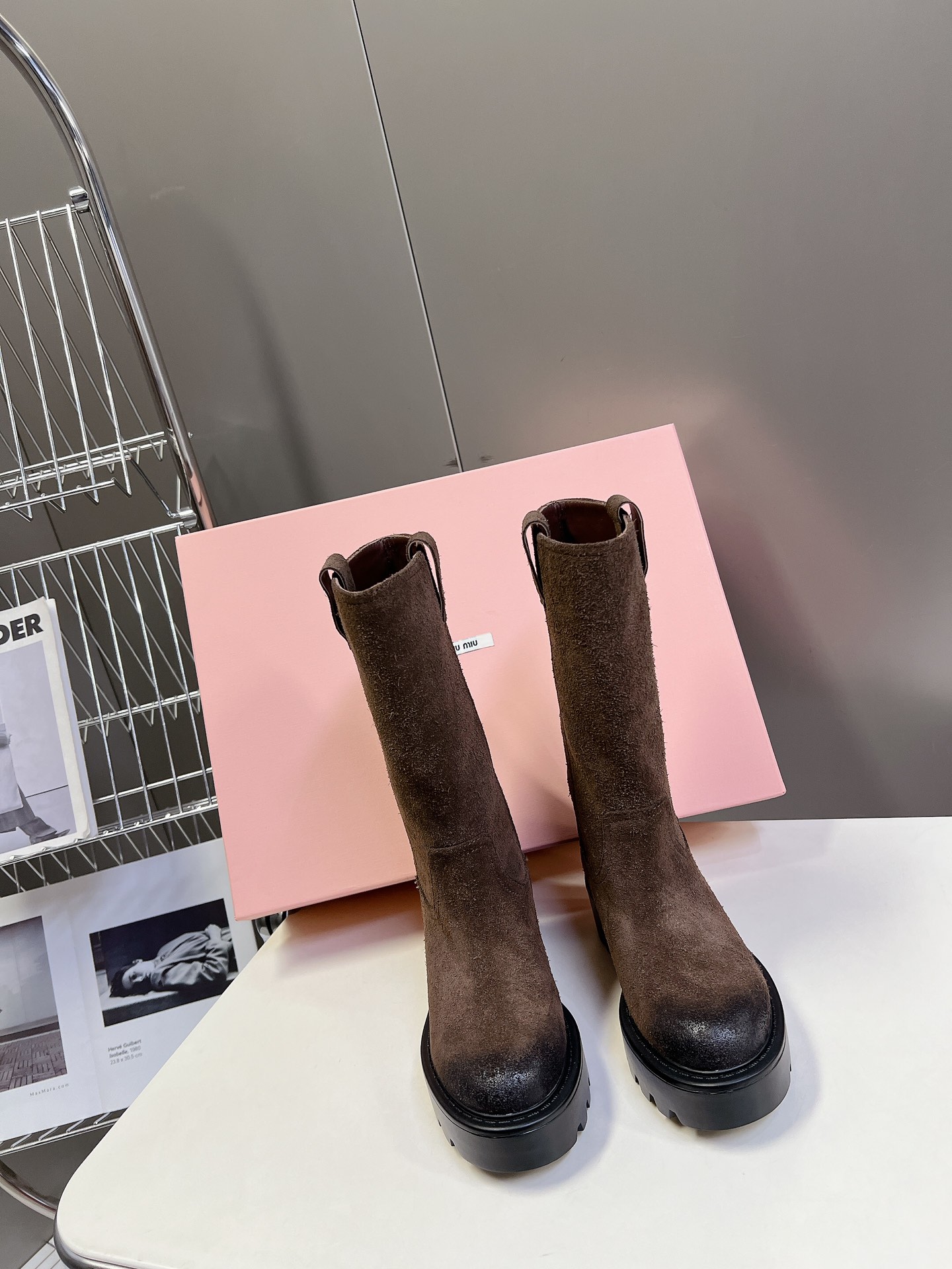 Top Miu Miu Fall/Winter Show Long Boots! Must-have boots this year, super soft and comfortable. Wide bootleg, suits all leg types, very leg-lengthening. 5.5cm sole, punk style. Upper: Imported cowhide. Lining: Cowhide. Sole: Original rubber. Sizes: 35-40.