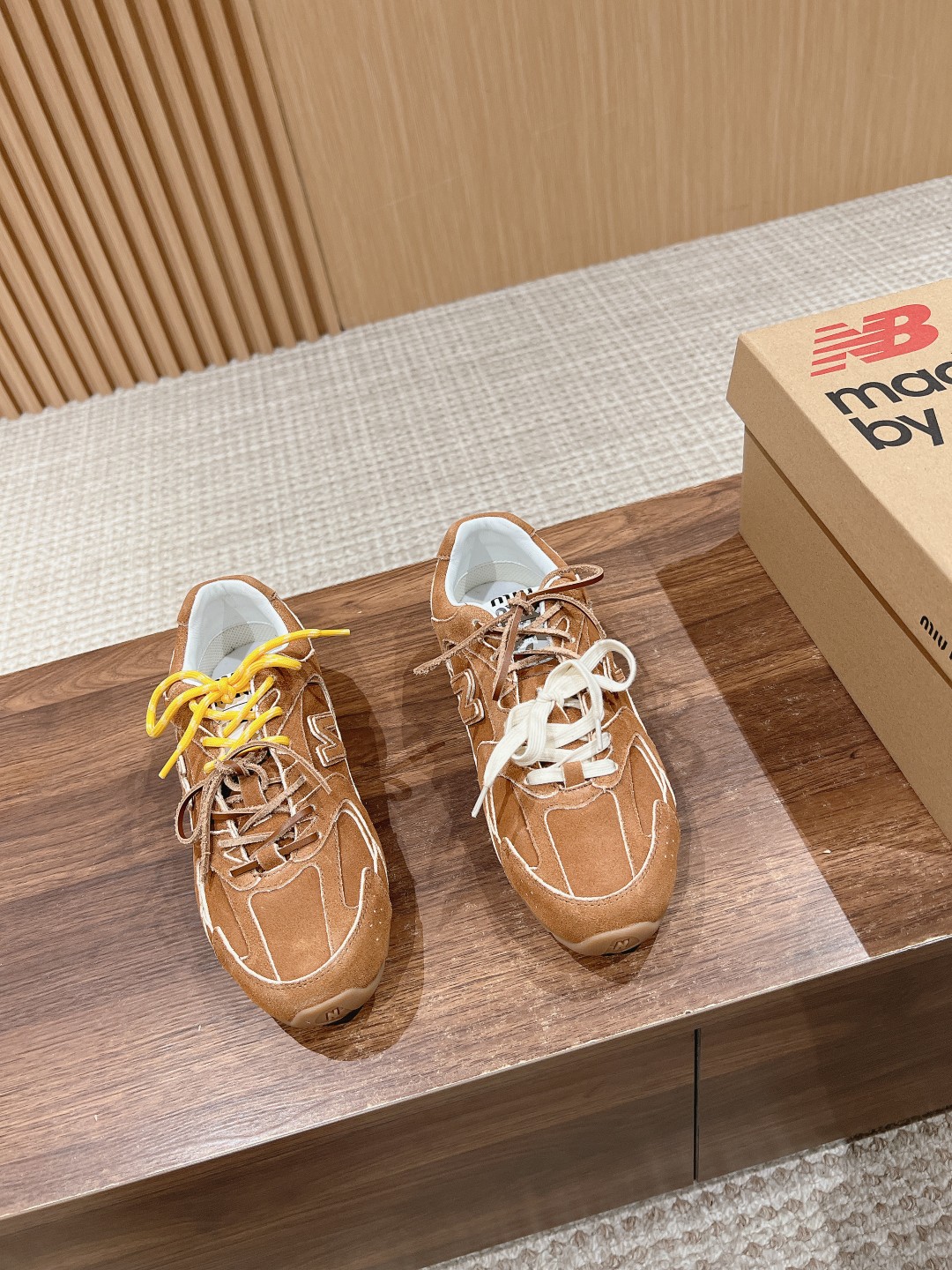 Couple's style, 2024 spring/summer show highlight: Miu Miu x New Balance 530 retro sneakers. Leather and suede upper, double laces design. Sizes: Women 35-40, Men 39-45. Original packaging.