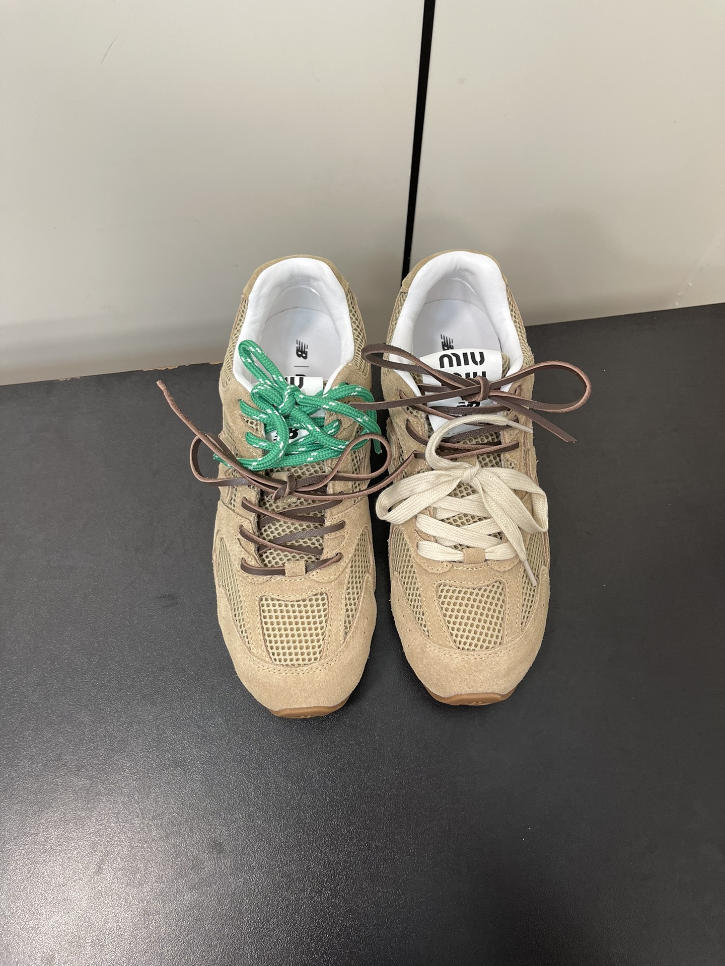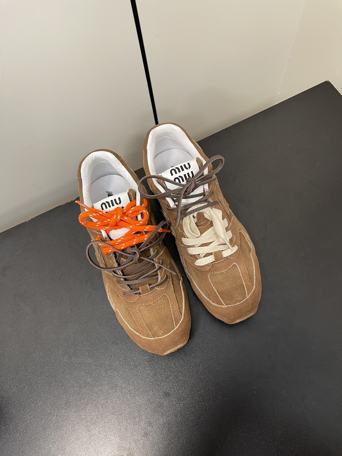 Miu Miu 2025 SS new sneakers. Bold design, thick sole, custom fabric, suede, lambswool lining, non-slip rubber sole. Sizes 35-40.