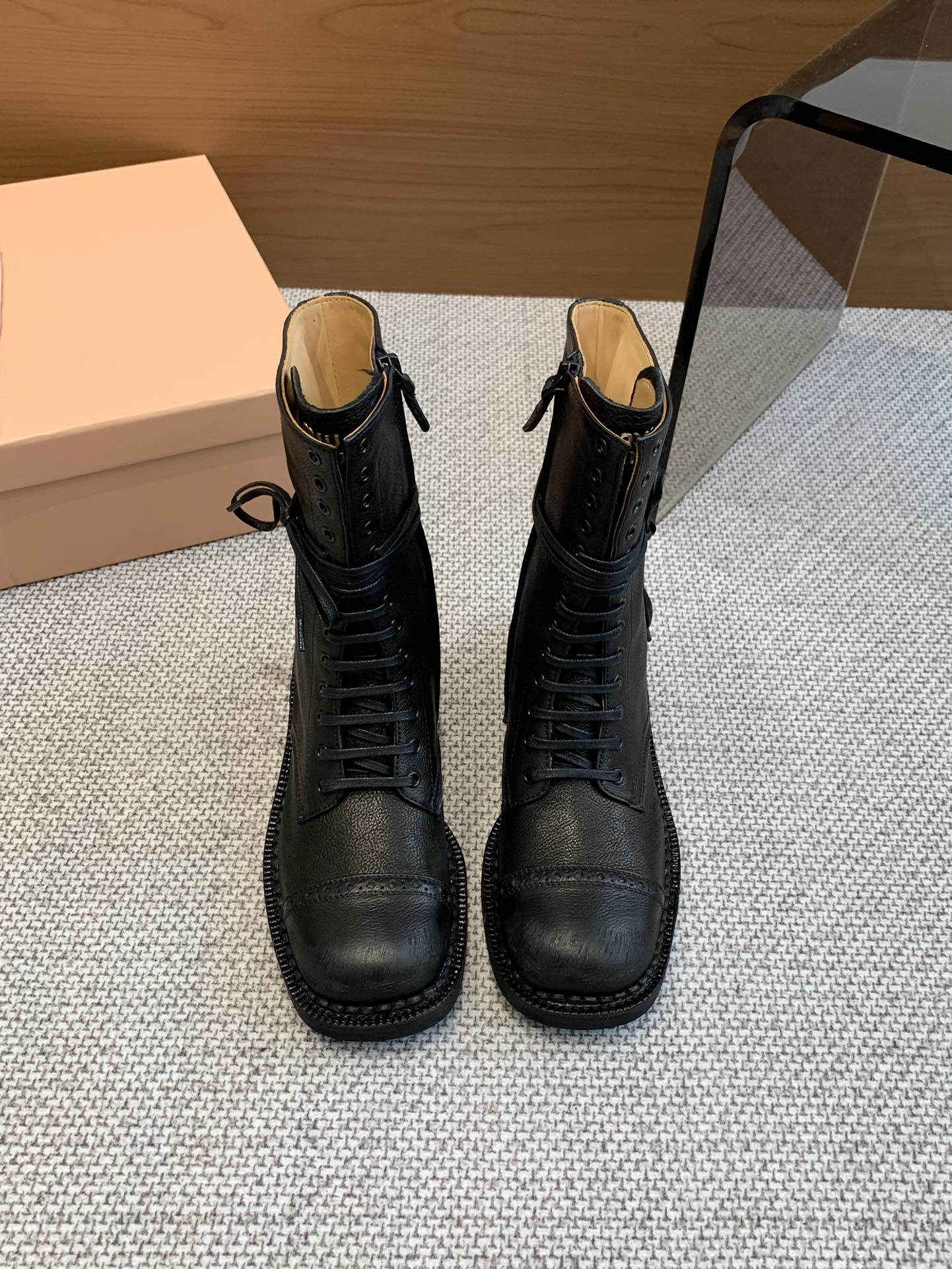 Top version Miu Miu 24 runway buckle riding boots. Fashionable, retro design. Upper: imported custom two-tone calfskin, leather lining, original rubber sole. Sizes: 35-40.