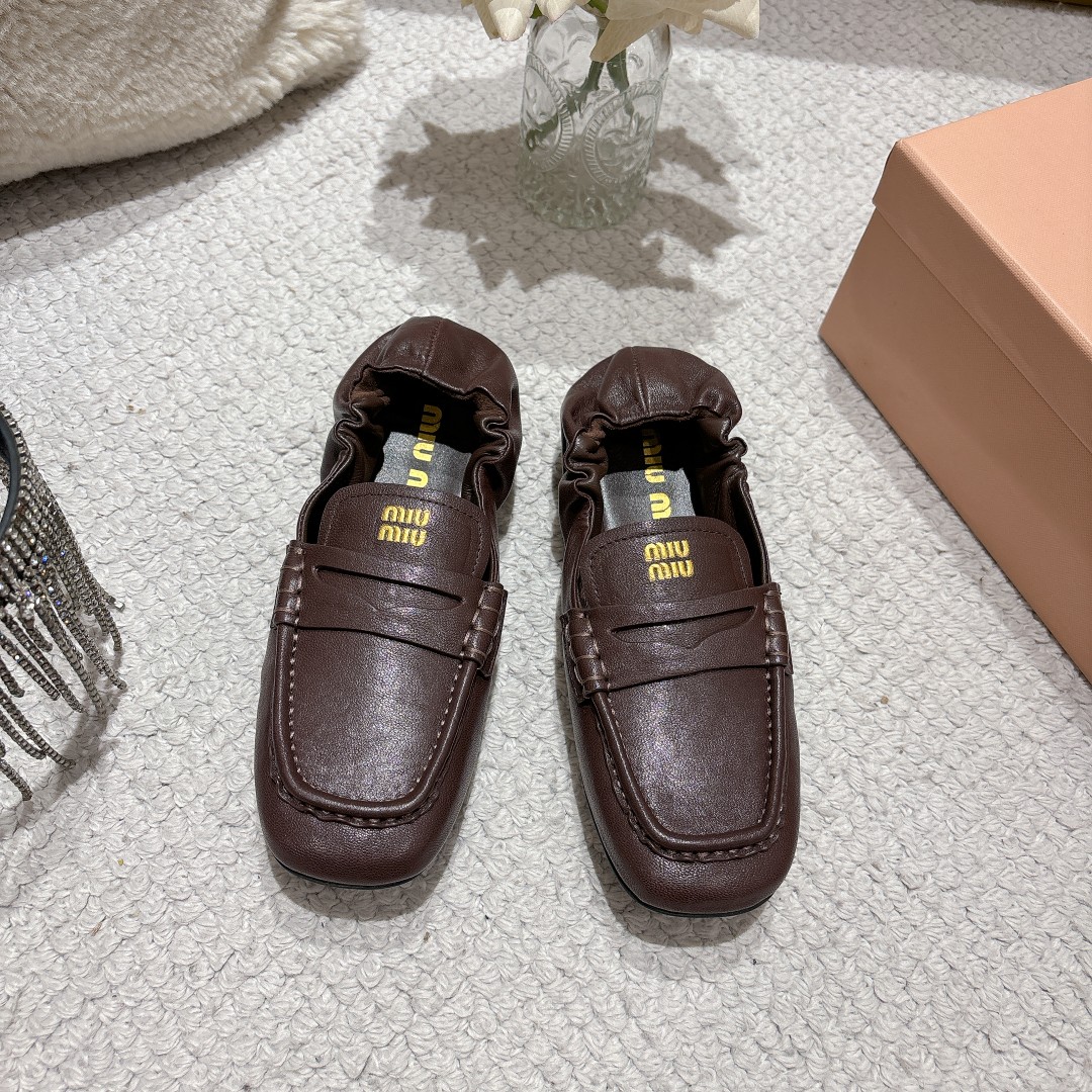 Miu Miu 2025 SS loafer with elastic back, versatile and stylish, made of specific mercerized cowhide.