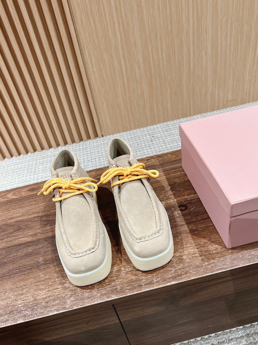 Miu Miu lace-up platform shoes with logo tag. New designer style, lightweight and comfortable. Sizes 35-39.