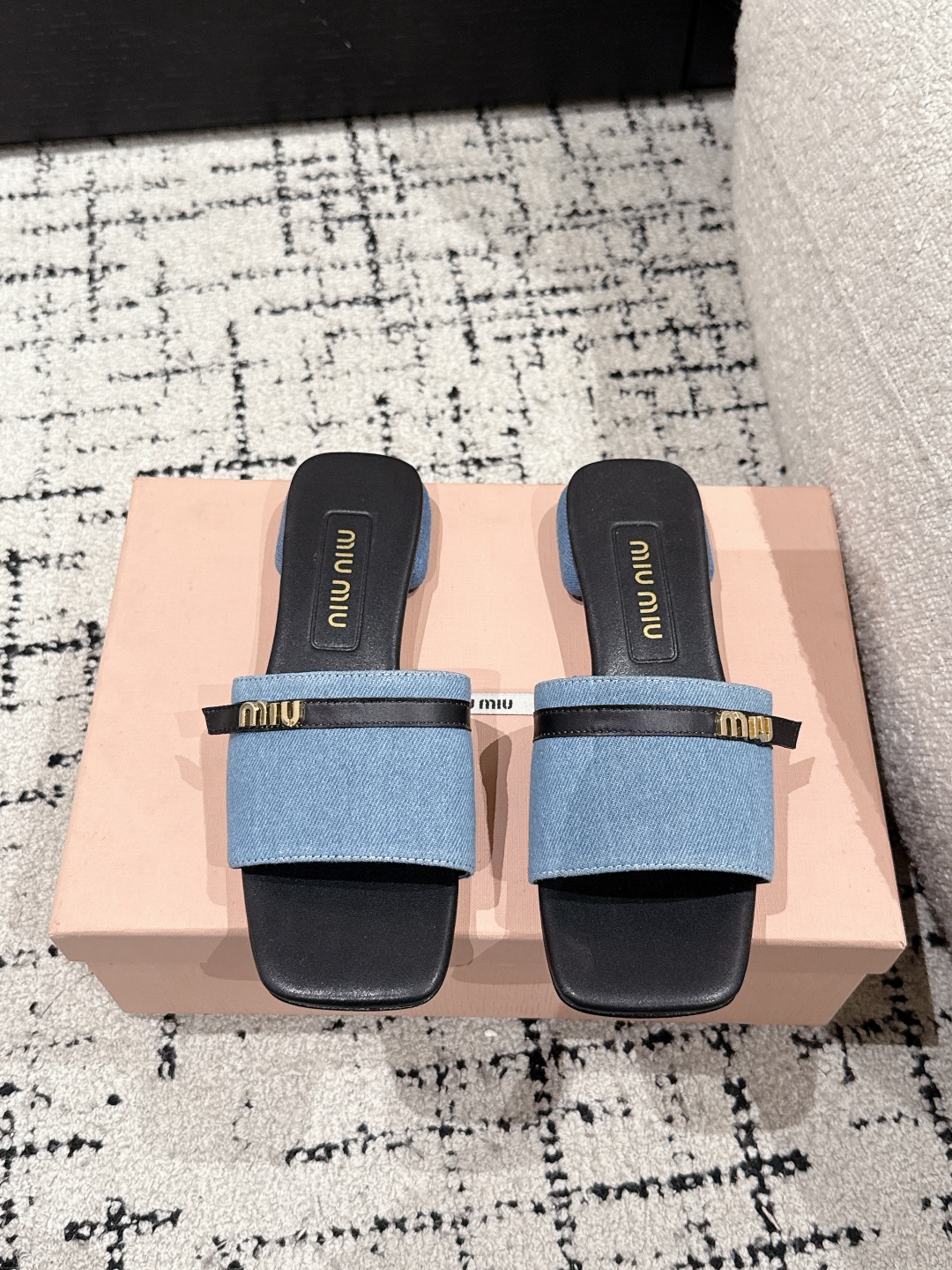 Miu Miu 25ss Latest Summer Flat Denim Lambskin Sandals …