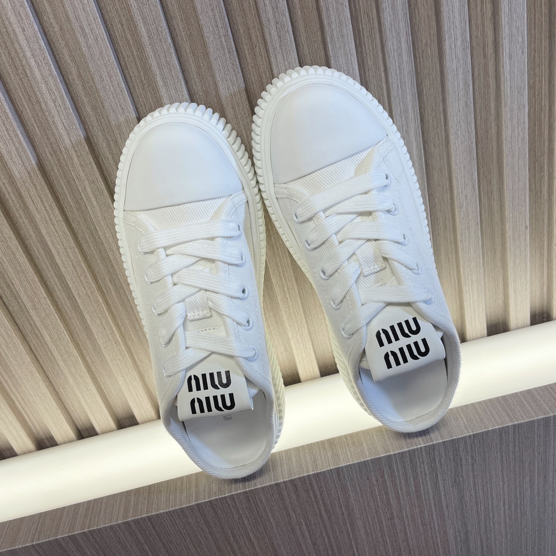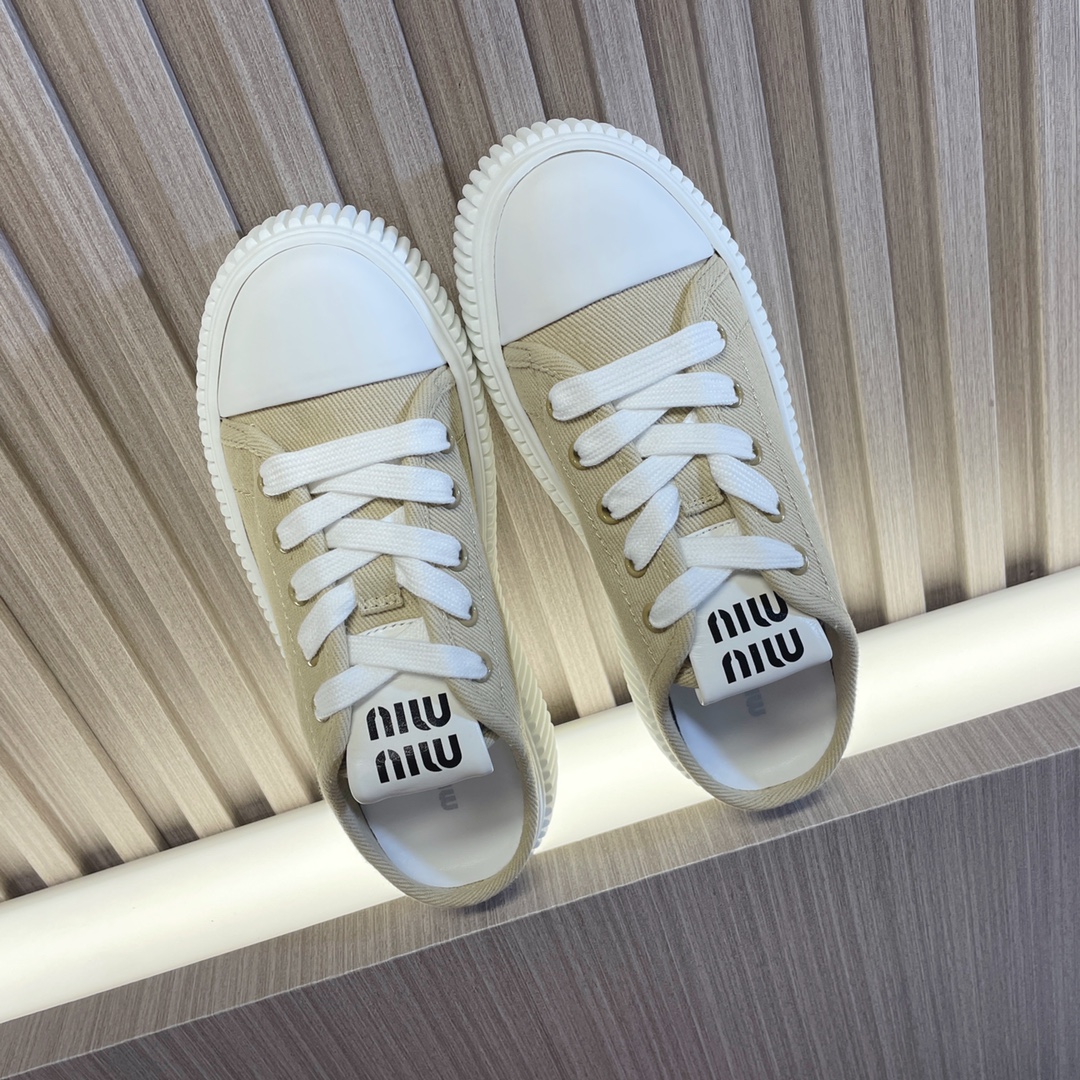 Miu Miu 2023 new half-drag sneakers, canvas shoes, white shoes. Simple sports sneaker design, highly recognizable tongue, creating a casual style.