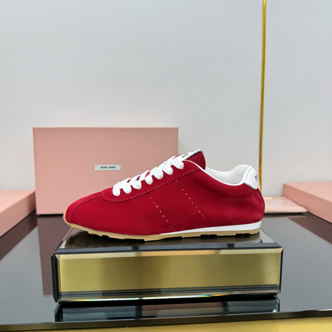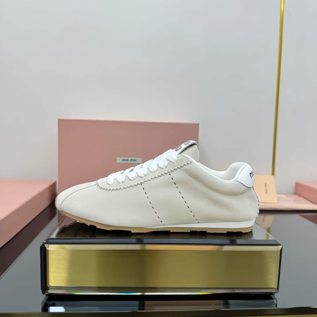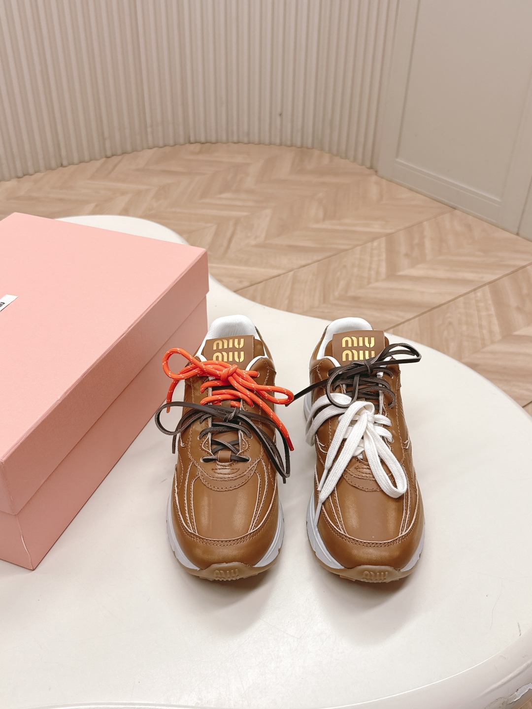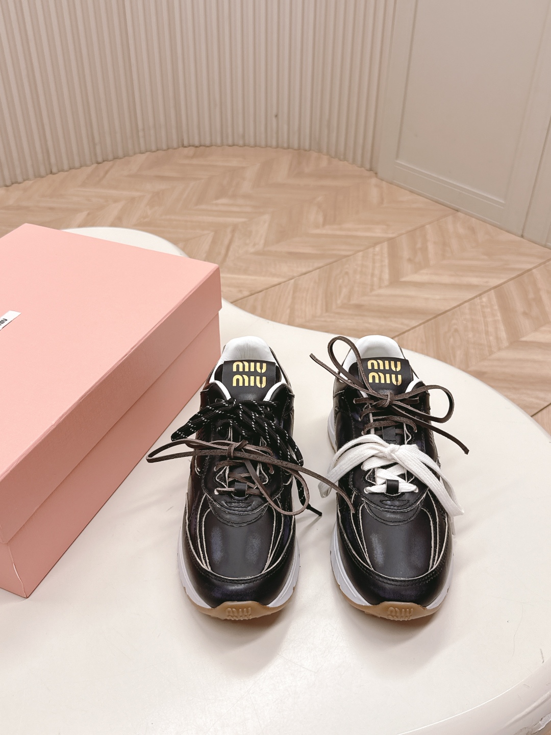 Miu Miu retro dad shoes, fashion sneakers. Worn-in style, simple and elegant. Comfortable fit, versatile design. Imported cowhide and mesh upper, mixed sheepskin lining. Sizes 35-40.