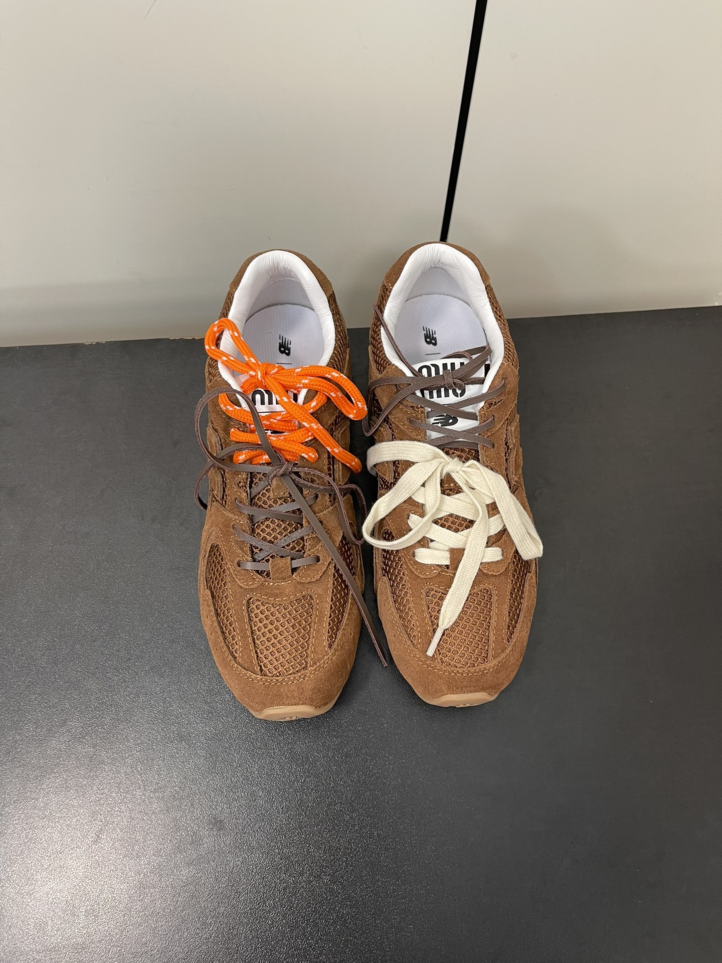 Couple's style, 2024 spring/summer runway hit: Miu Miu x New Balance 530 retro sneakers. Leather and suede upper, dual-lace design. Includes three sets of laces. Sizes: Women 35-40, Men 39-45. Original packaging.
