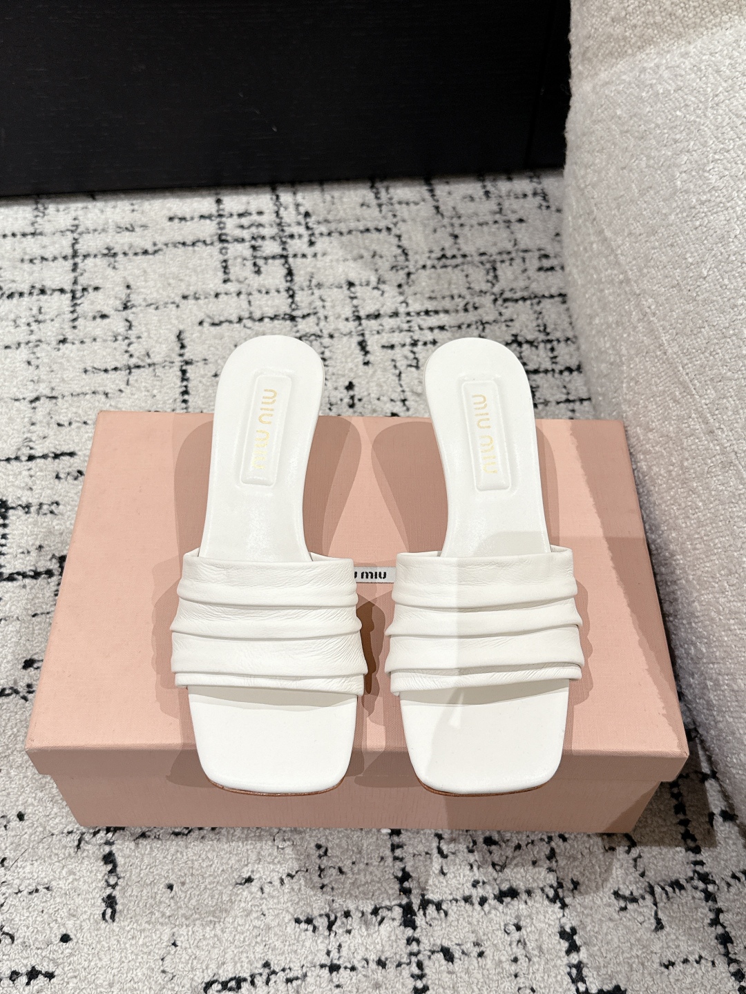 Miu Miu 25ss summer flat denim lambskin slippers. Handcrafted with cloud-shaped heel. Upper: denim/lambskin, lining: lambskin, sole: Italian leather. Sizes 35-40.