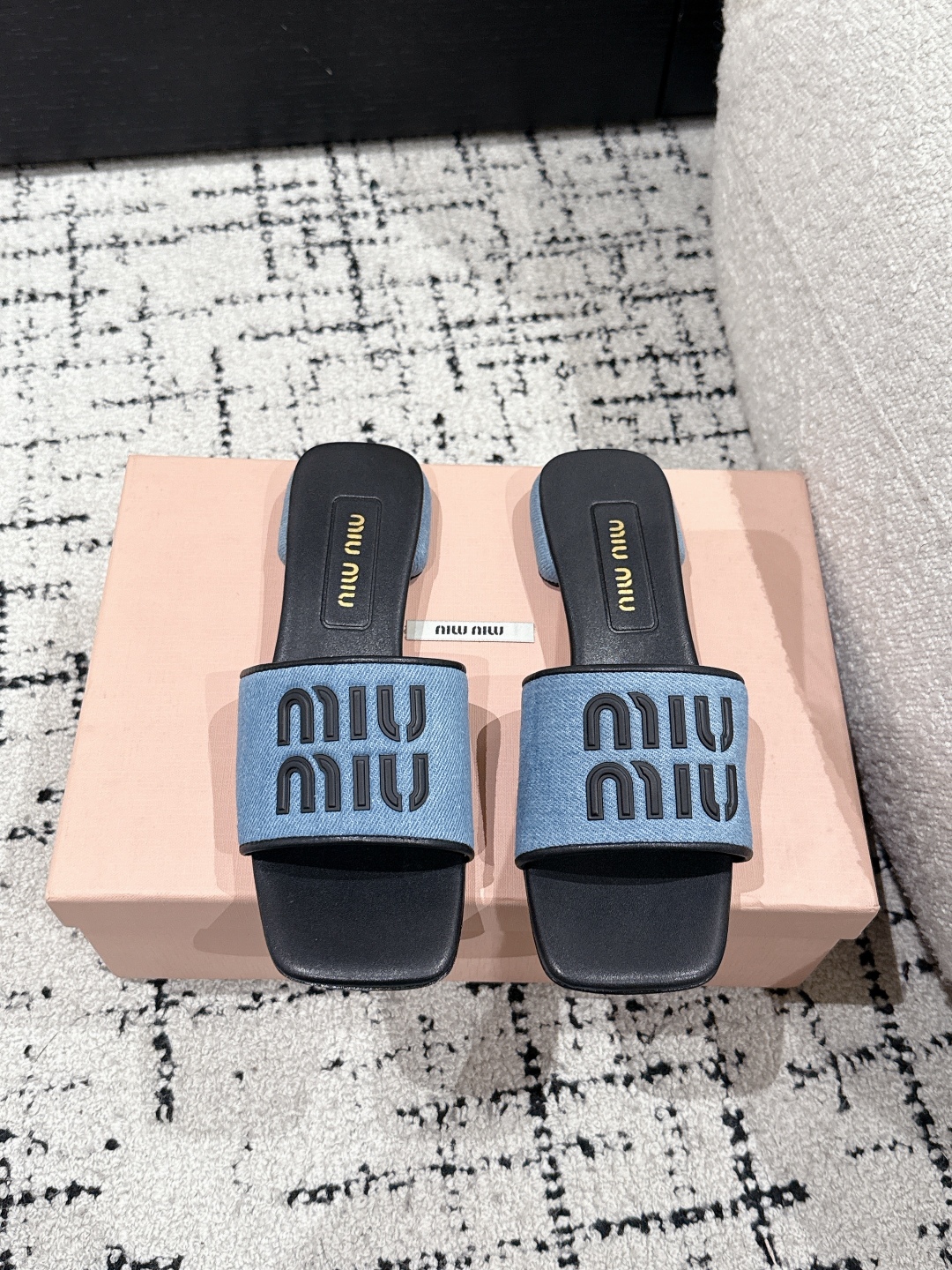 Miu Miu 25ss Latest Summer Flat Denim Lambskin Sandals …