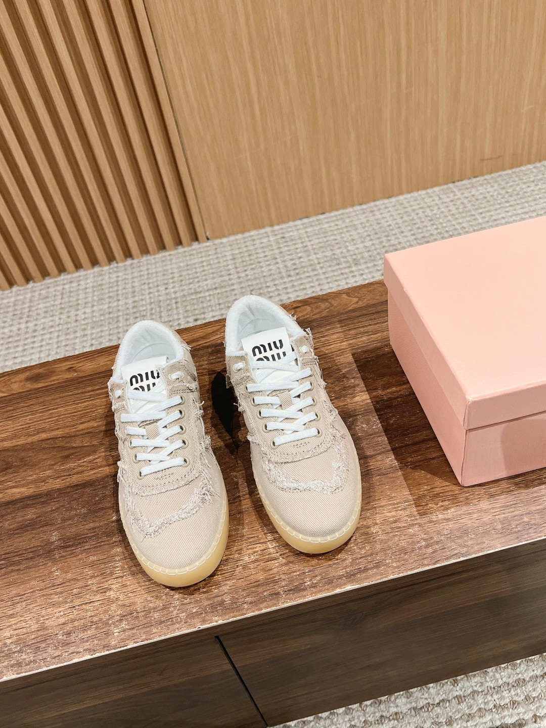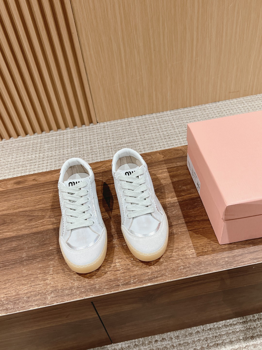 MiuMiu new vintage-style sneakers, aged design, simple and elegant. Comfortable, versatile. Top grain leather, silk lining. Sizes 35-40.