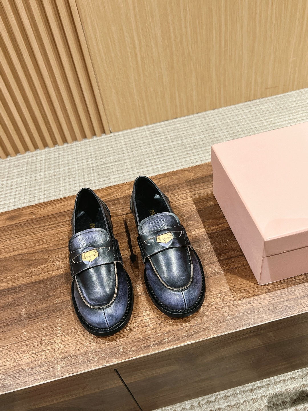 MiuMiu classic coin loafers, retro and stylish design. Genuine leather upper, sheepskin lining, rubber sole. Sizes 35-39.