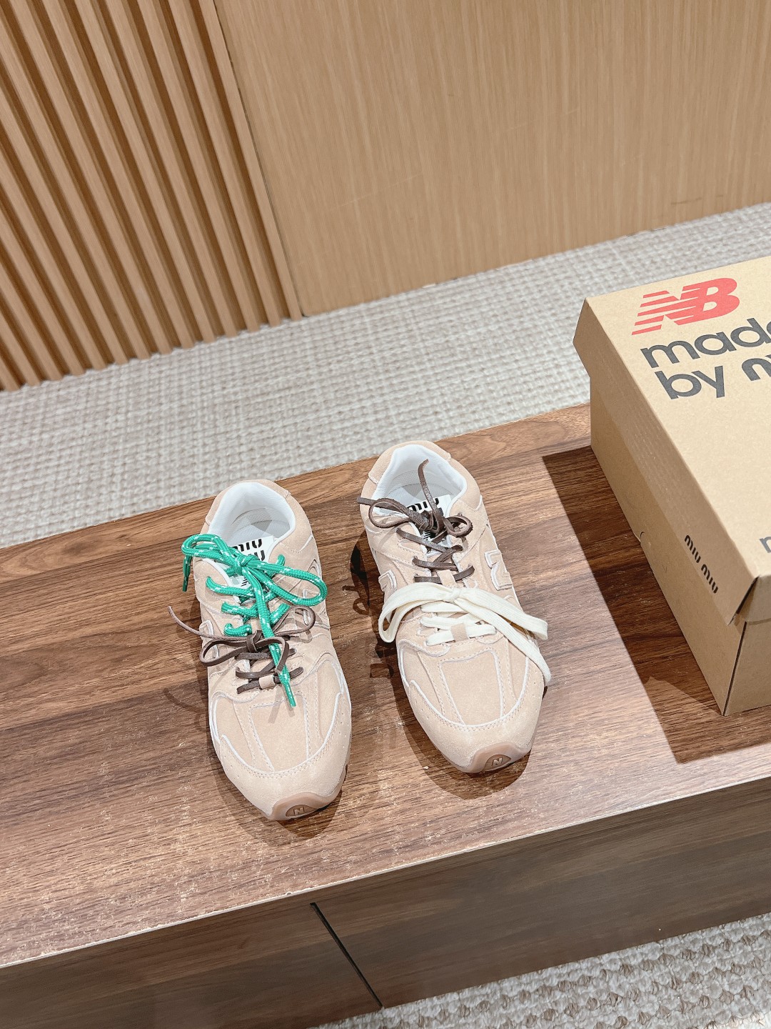 Couple's style, 2024 spring/summer show highlight: Miu Miu x New Balance 530 retro sneakers. Leather and suede upper, dual-lace design, comfortable fit. Sizes: Women 35-40, Men 39-45. Original packaging.