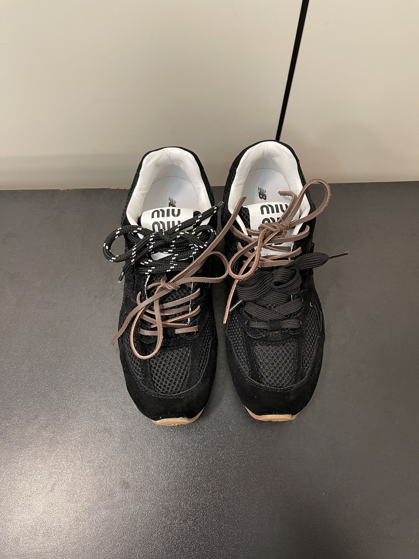 Miu Miu retro dad shoes, worn-out style, simple and high-end. Comfortable, versatile, with double laces. Made of imported cow suede, mesh, and mixed sheepskin lining. Sizes 35-40.
