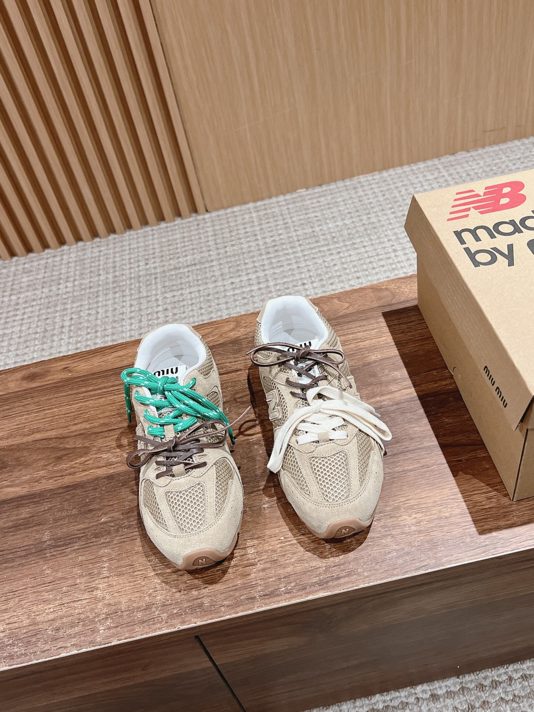 Couple's style, 2024 spring/summer runway hit: Miu Miu x New Balance 530 retro sneakers. Leather and suede upper, dual-lace design. Includes three sets of laces. Sizes: Women 35-40, Men 39-45. Original packaging.
