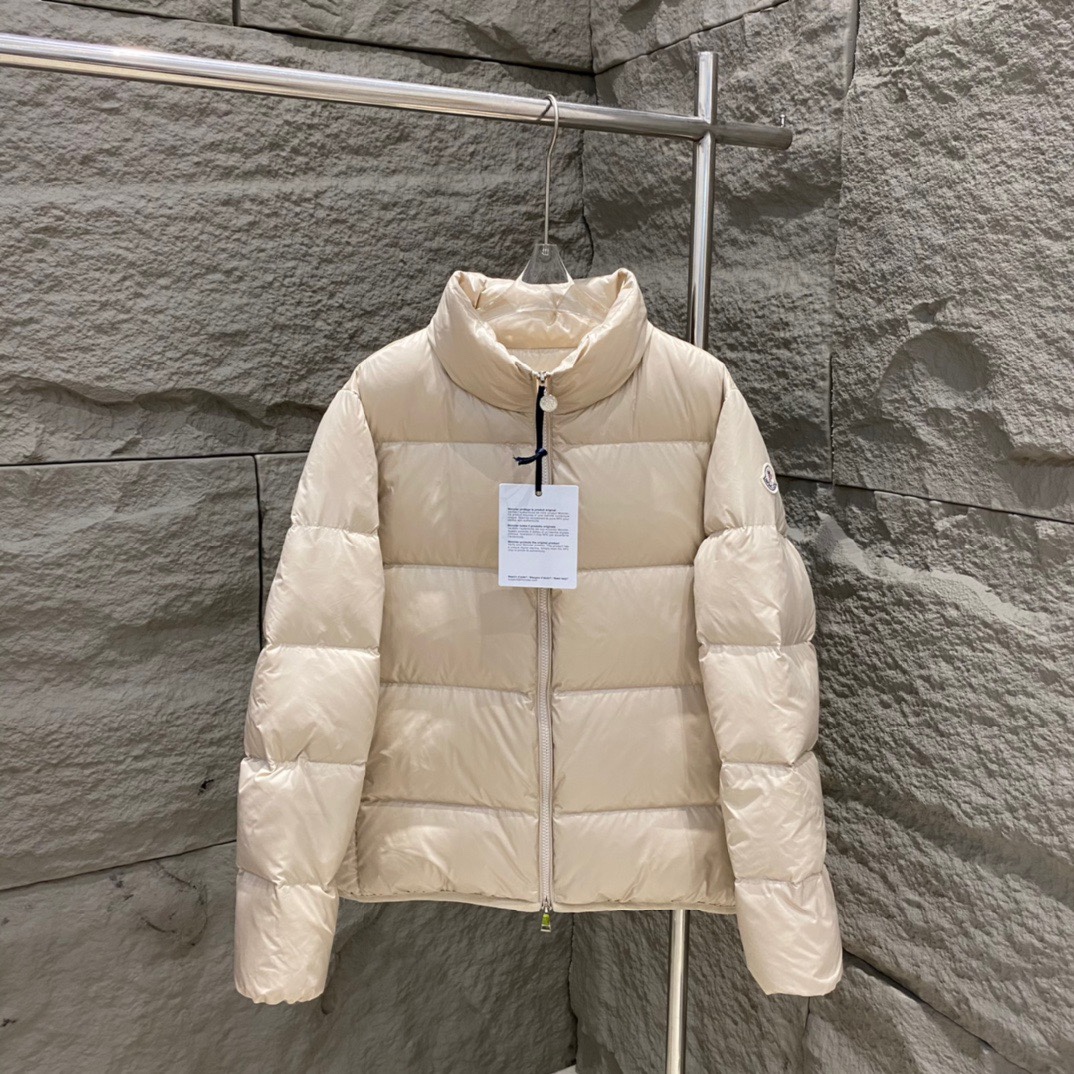 Moncler Caramagne women's short puffer jacket, 2025 autumn-winter new style. Loose box cut with adjustable waist belt. Colors: beige, black. Sizes: 0-1-2.